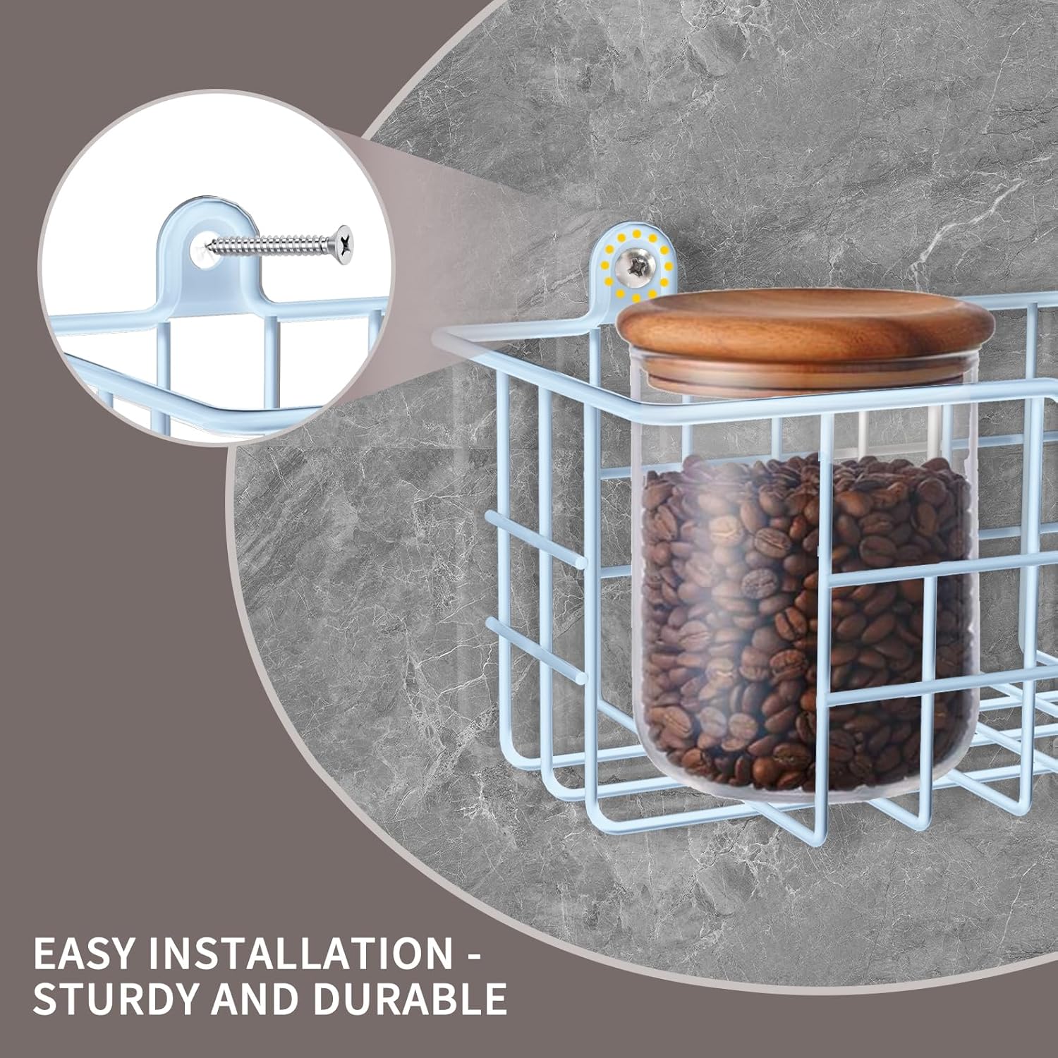 Spice Rack, 4-Pack Seasoning Organizer Wall Mount for Kitchen Storage Organization, Metal Spice Holder Shelf Saving Space for Cabinet, RV, Pantry, Blue