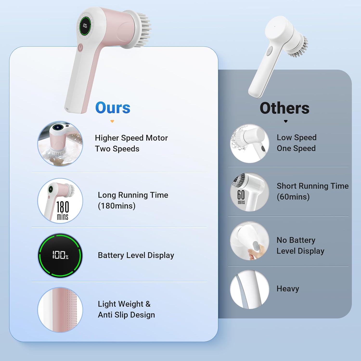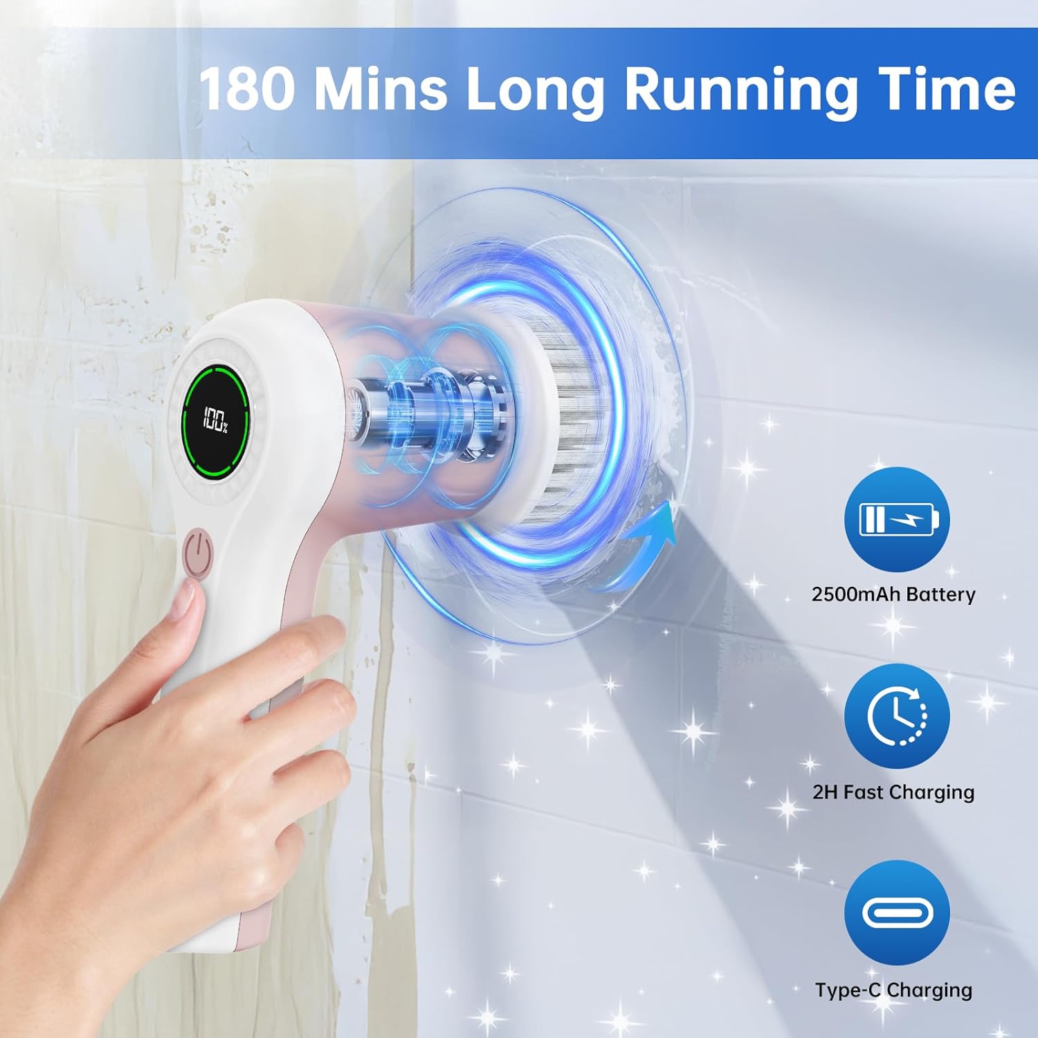 • 6 Replaceable Heads & Easy to Install: This electric scrubber for cleaning comes with 6 replaceable brush heads, catering to all cleaning needs - from bathrooms, bathtubs, and floors to toilets, car wheel hubs, windows, dishes, and more. With a more stable structure, the brush heads and device can be easily and securely installed to avoid brush head fall off while using.