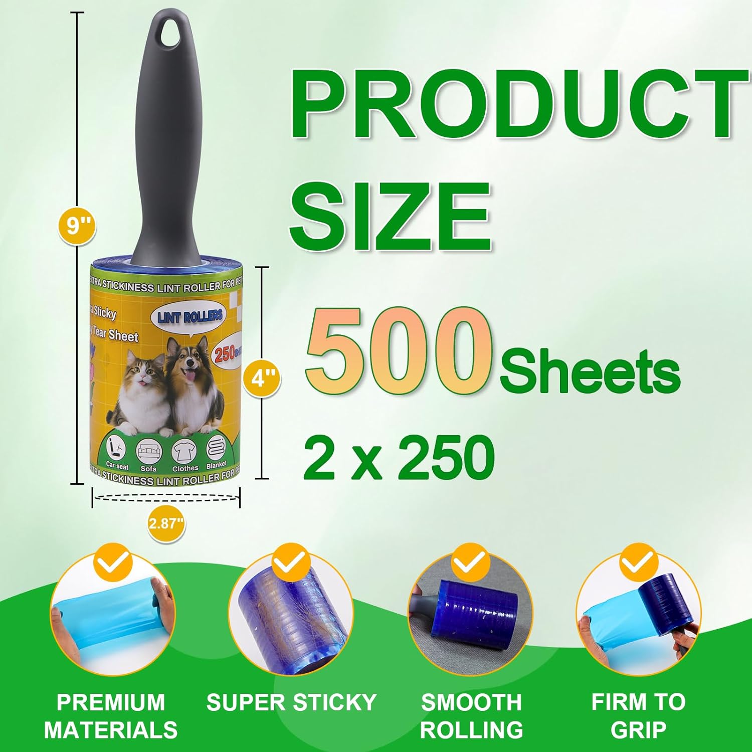 • ERGONOMIC DESIGN & DURABLE HANDLE Enjoy comfortable, slip-resistant cleaning with our lint roller's ergonomic grip! The reinforced handle ensures long-lasting durability, even during daily use. Perfect for pet owners who need a tool that fits naturally in hand and withstands frequent fur battles.