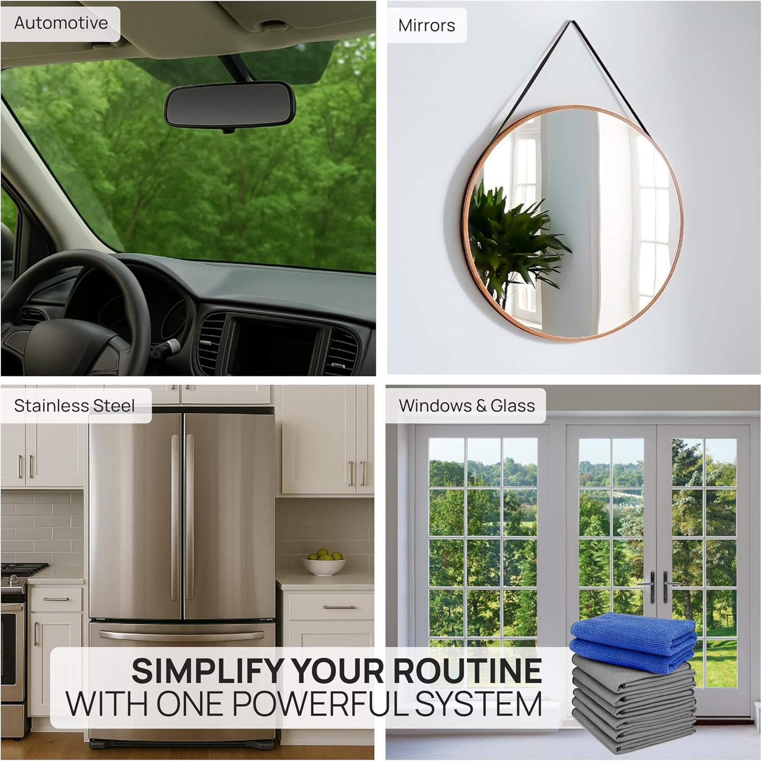 • 2-Step Streak-Free Clarity - Eliminate smudges, fog, and haze with Claro 2-cloth process: Use the damp blue cloth to remove grime, then follow up with the dry gray microfiber cleaning cloth for cars.