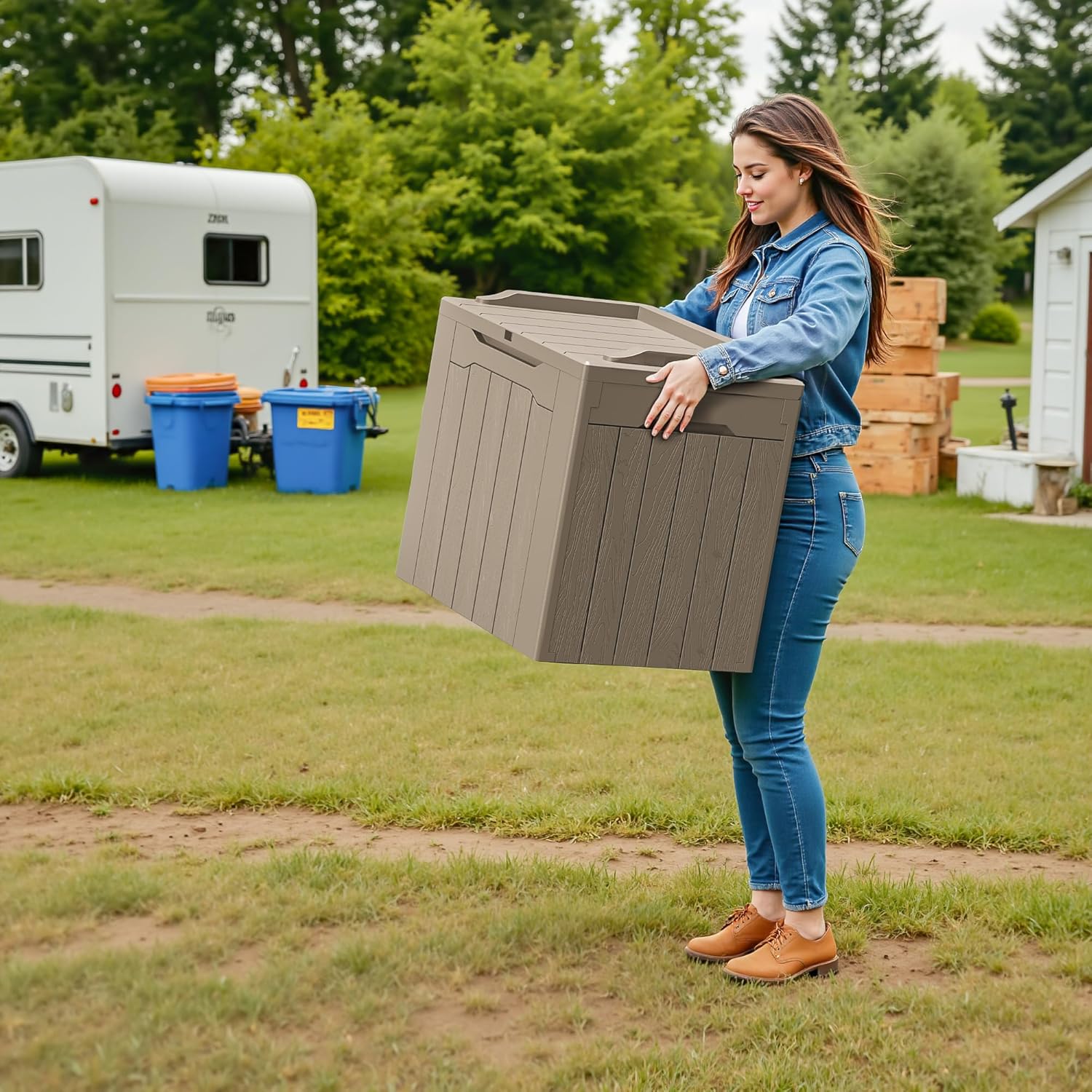 • Light & Solid: Made of a high density resin material, it is stable, waterproof and UV resistant. The net weight of this deck box is only 8.8 pounds