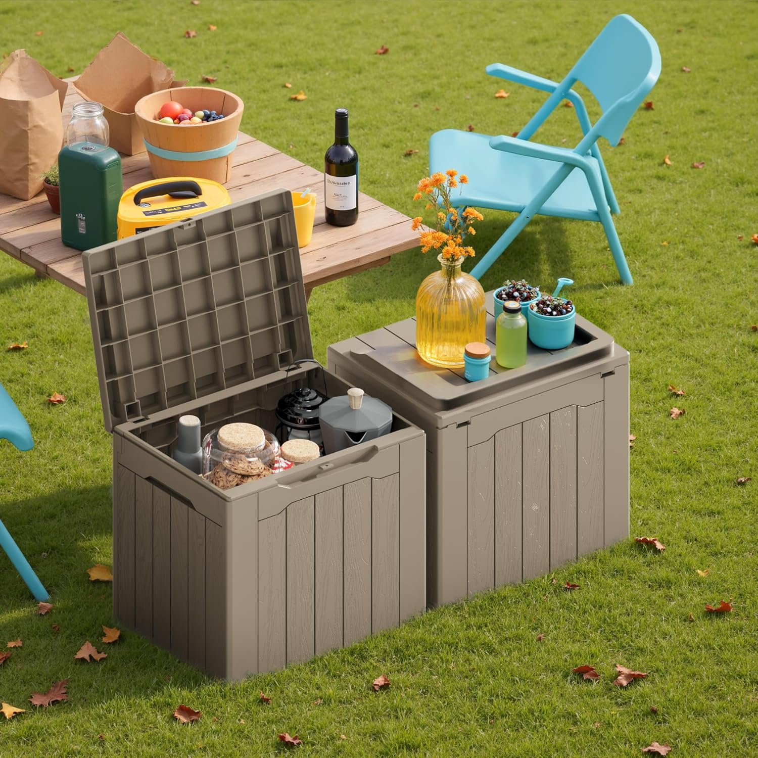 Devoko 30 Gallon Resin Deck Box 2 Pack Outdoor Indoor Waterproof Storage Box for Patio Furniture Pool Accessories Storage for Cushion Garden Tools (Light Brown, 2 Pack)