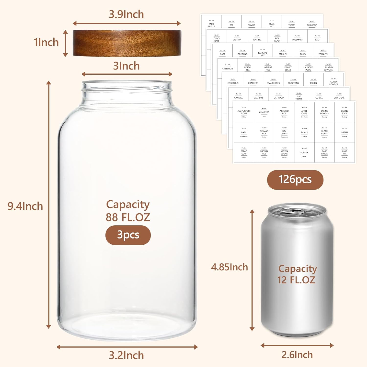 • Wide Opening Mason Jar Design: The 3 inch wide-mouth design allows you to store bigger stuffs such as eggs, cookies, laundry pods etc. It is more convenient to clean no matter in dishwasher or by hand.