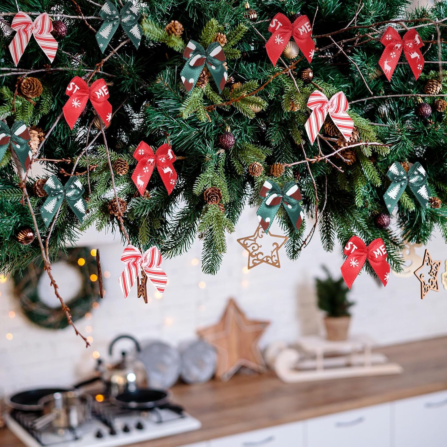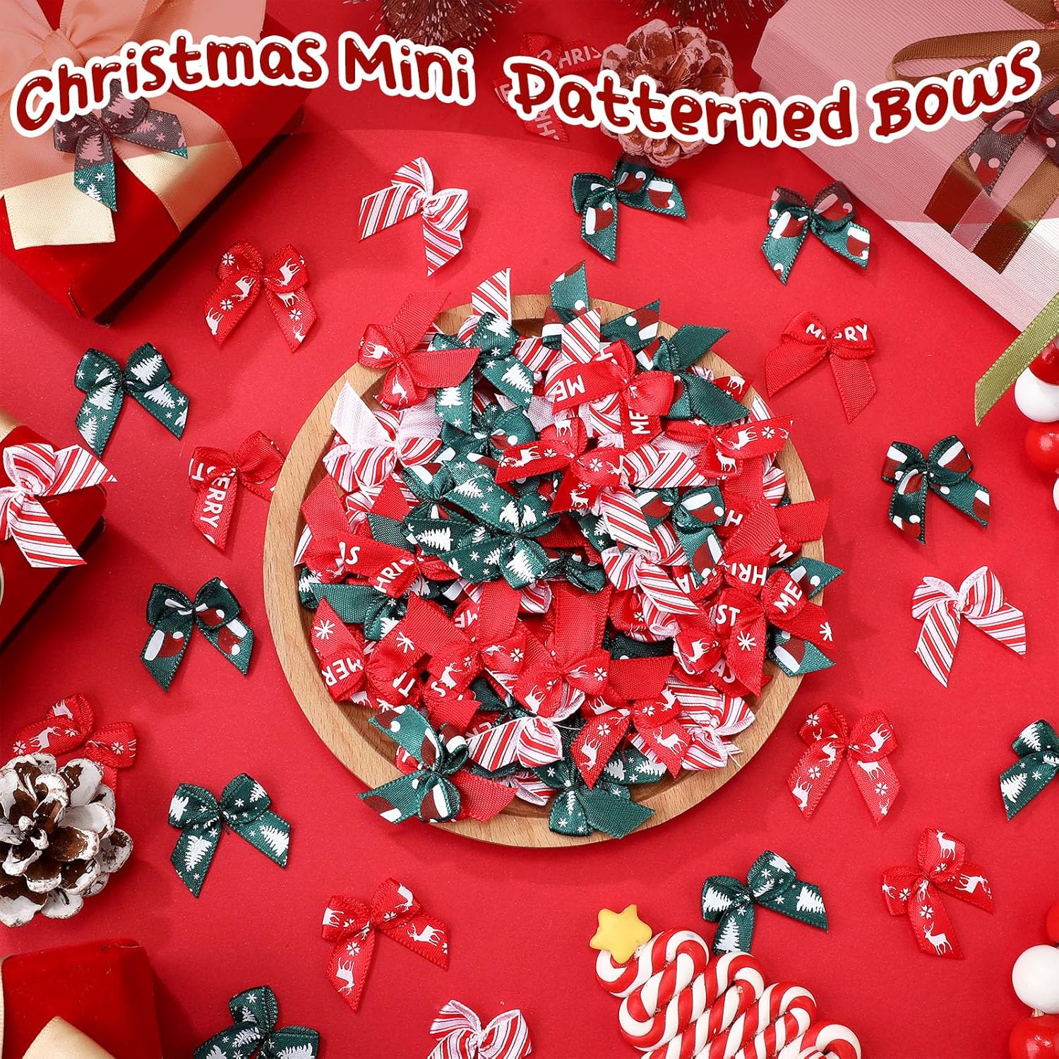 Syhood 150 Pcs Christmas Mini Bow Tiny Twist Tie Bow Handmade Craft Ribbon for DIY Sewing Party Decor(Red and Green,Patterned)