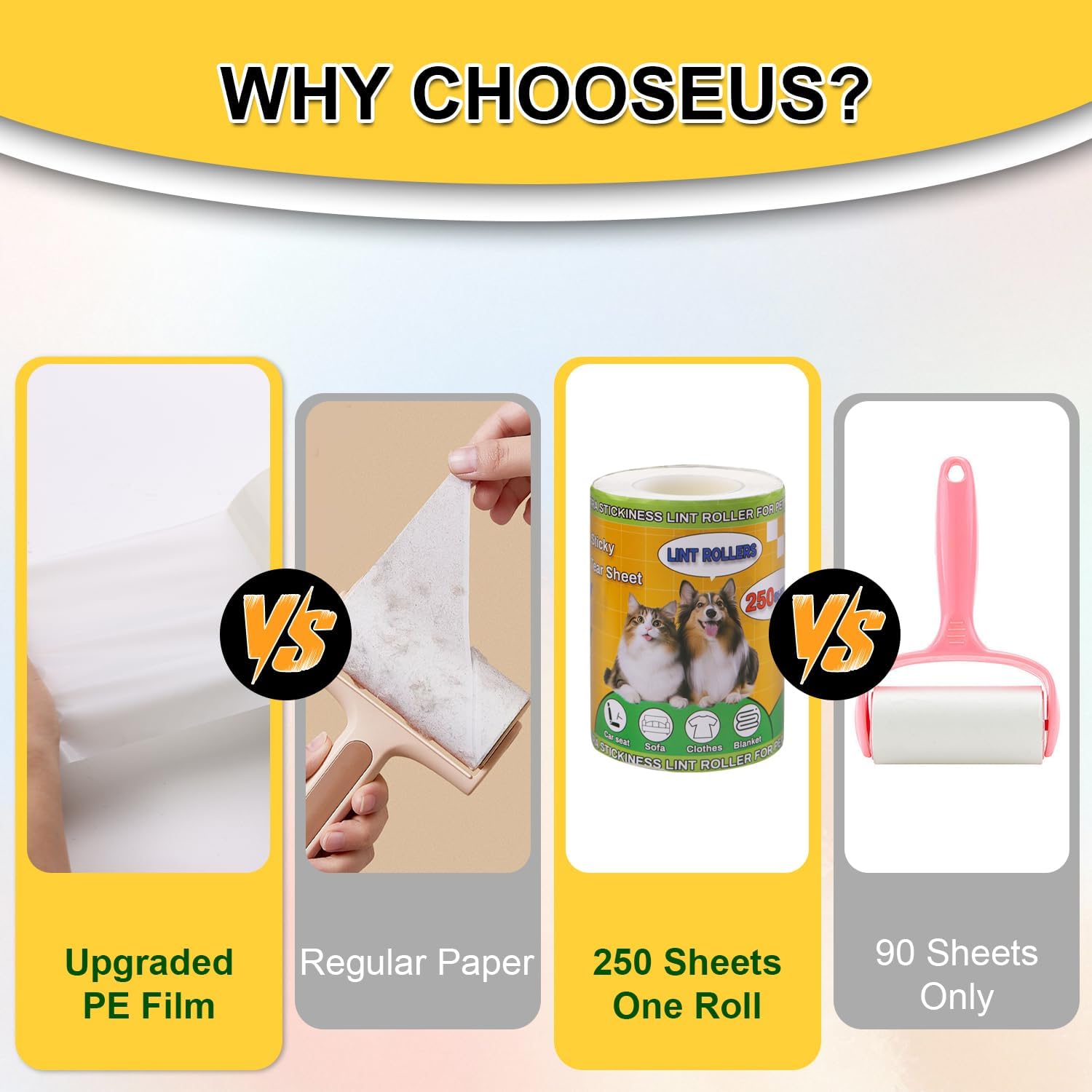 • Multi use: this pack of lint rollers will serve as a perfect assistant in your home, car and office. It can tackle everything from curtains to car seats, and anything in between. Effective for clothes, furniture, sofas, carpets, bed sheets, etc. Does your pet's hair cling to furniture and clothes even though you brush it every day? Our dog & cat hair lint roller will finally help you deal with the fur situation!
