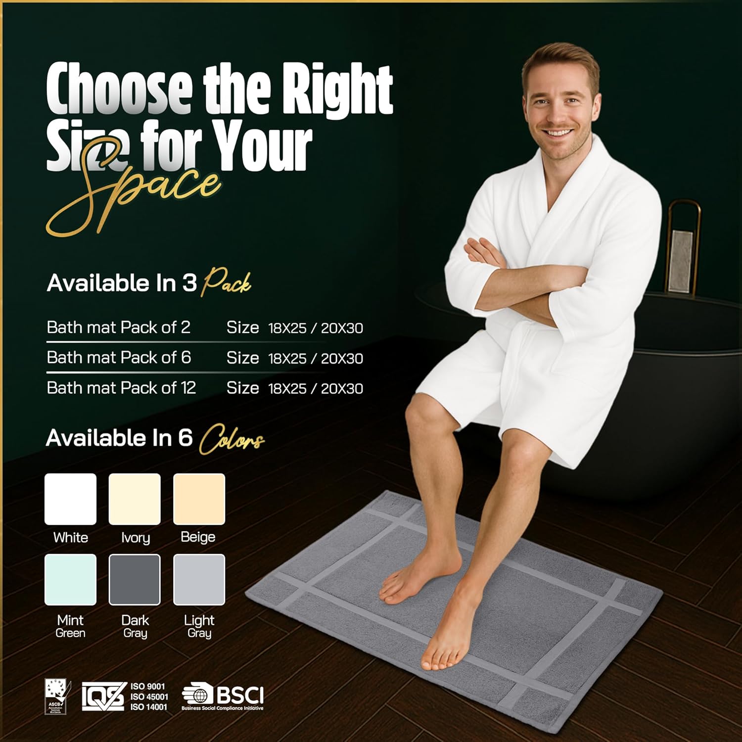 • ✅ 6-Pack Value Set – Large 20x30” Size Includes six generously sized 20x30 inch bathroom mats, ideal for home, guest, or spa use. A must-have for households needing absorbent and stylish cotton bath mats.