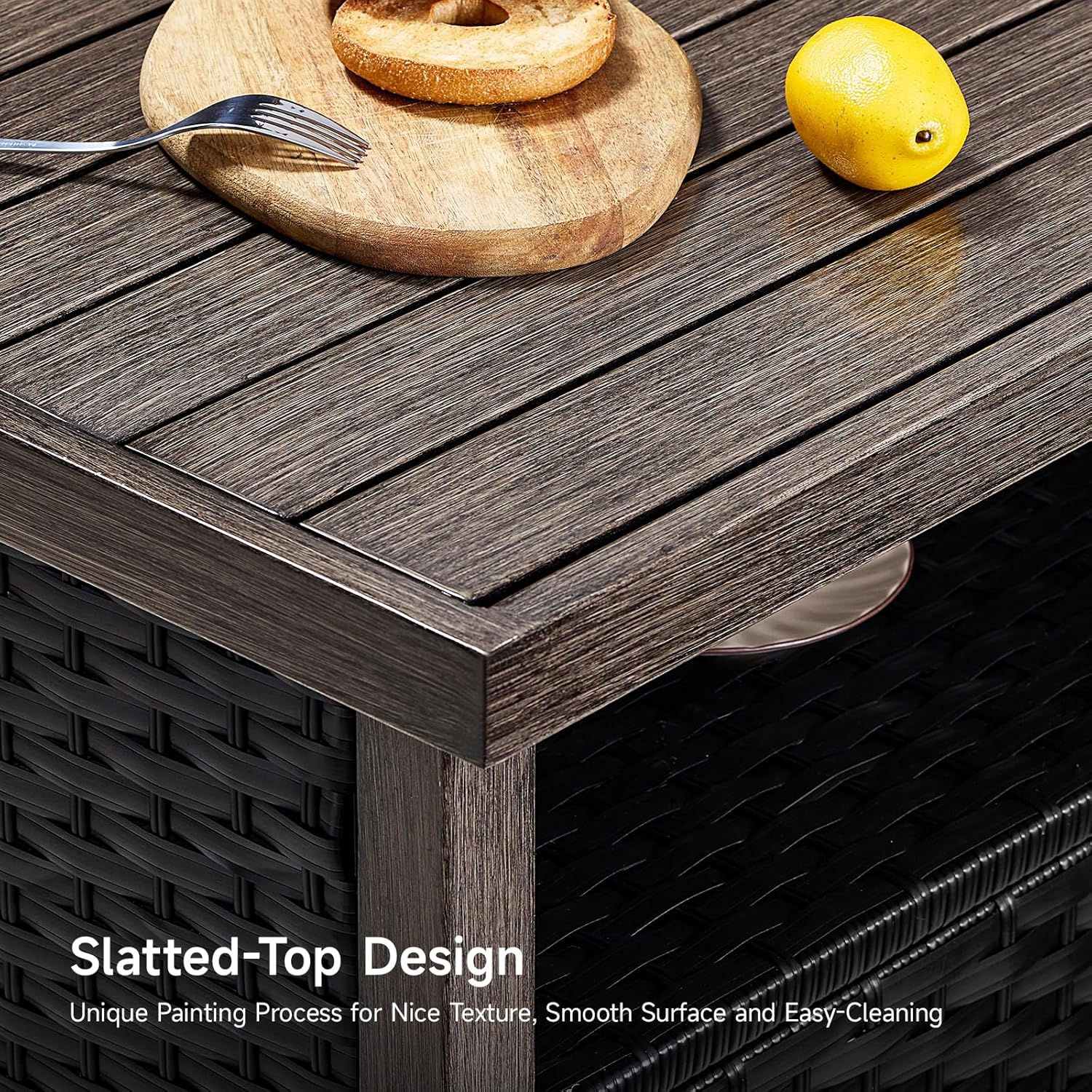 • Hand-painted Slatted-top: Every slat is a canvas! Artisans meticulously paint the steel slats, creating unique patterns that shimmer under sunlight. The airy gaps between slats add farmhouse charm – perfect for setting out exquisite dinners and desserts. This isn’t just a outdoor bar, it’s a conversation-starting work of art!
