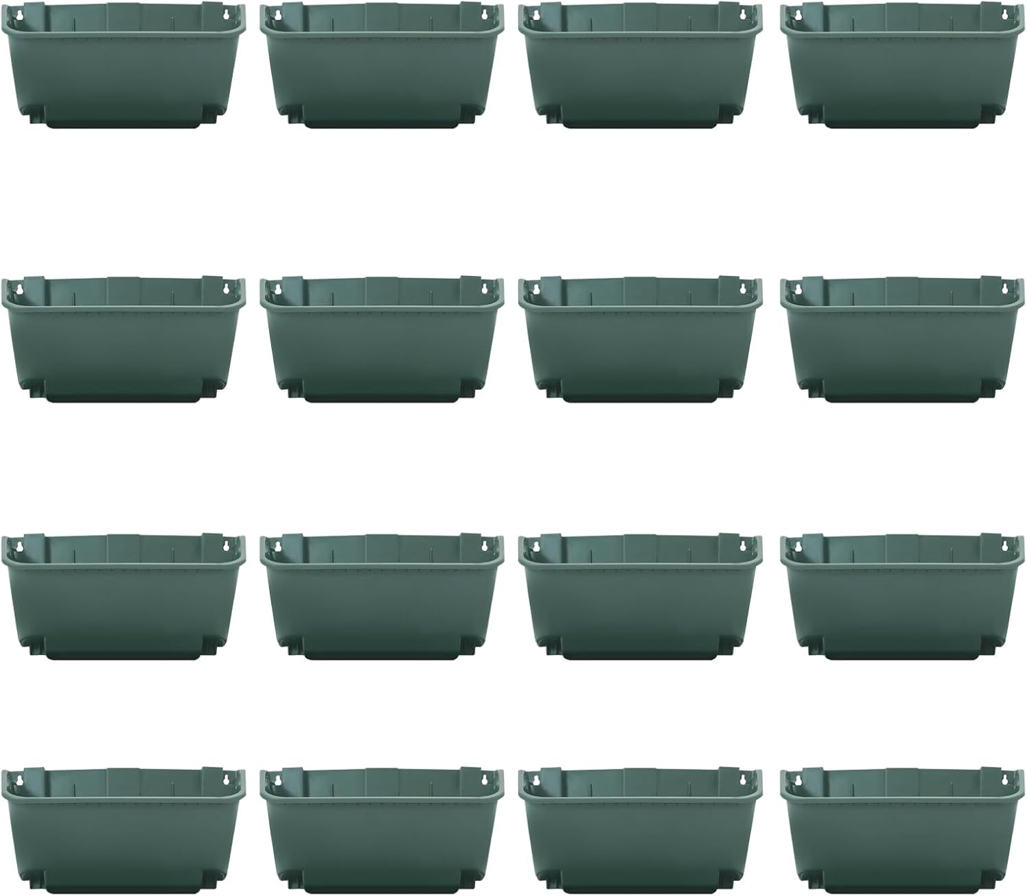 16Pcs Vertical Wall Planter, 13 inch Wall Mounted Garden Planters, Plastic Wall Hanging Planter with Drainage Holes, Wall Planters for Patio Outdoor Decor, Balcony Plant Hanging Flowerpot (Green)