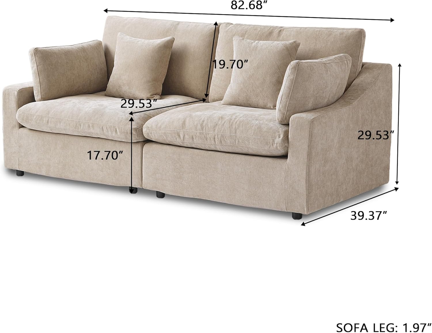 • ⛅[Size Information] Overall Size: 82.68"L x 39.37"W x 29.53"H. The cushion cover, backrest cover, and frame cover of the sofa can all be removeable and washable. You can easily keep the sofa clean.