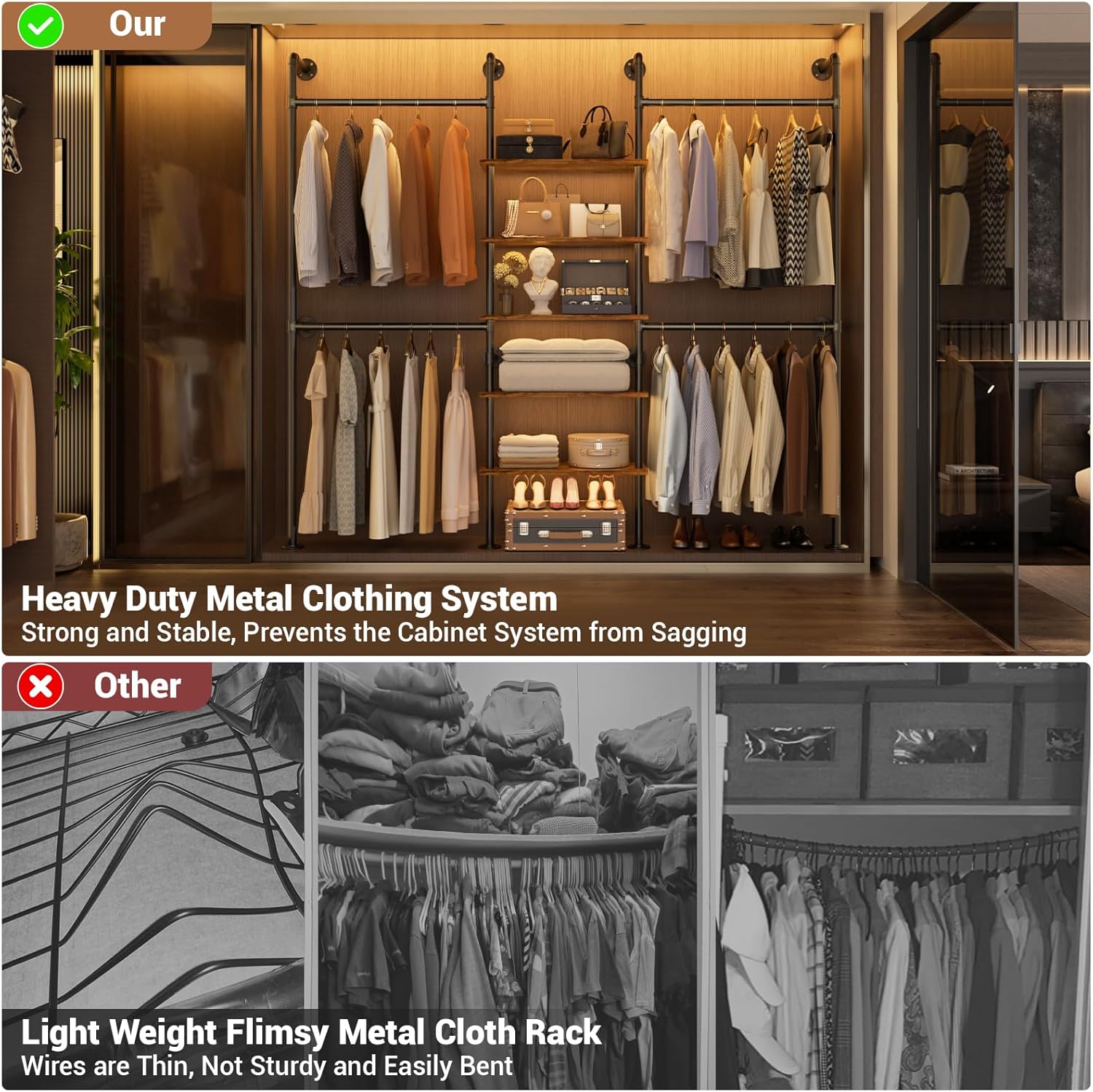 • 【Easy to Assembly & Exceptional Customer Service】The Pipe clothes rack poles connect directly via threaded joints, quick and simple setup, no additional tools required for your new modern closet systems. We provide lifetime customer support, No matter before or after-sales, Any problems pls contact us, our experienced customer service team will respond in 24 hours ASAP.