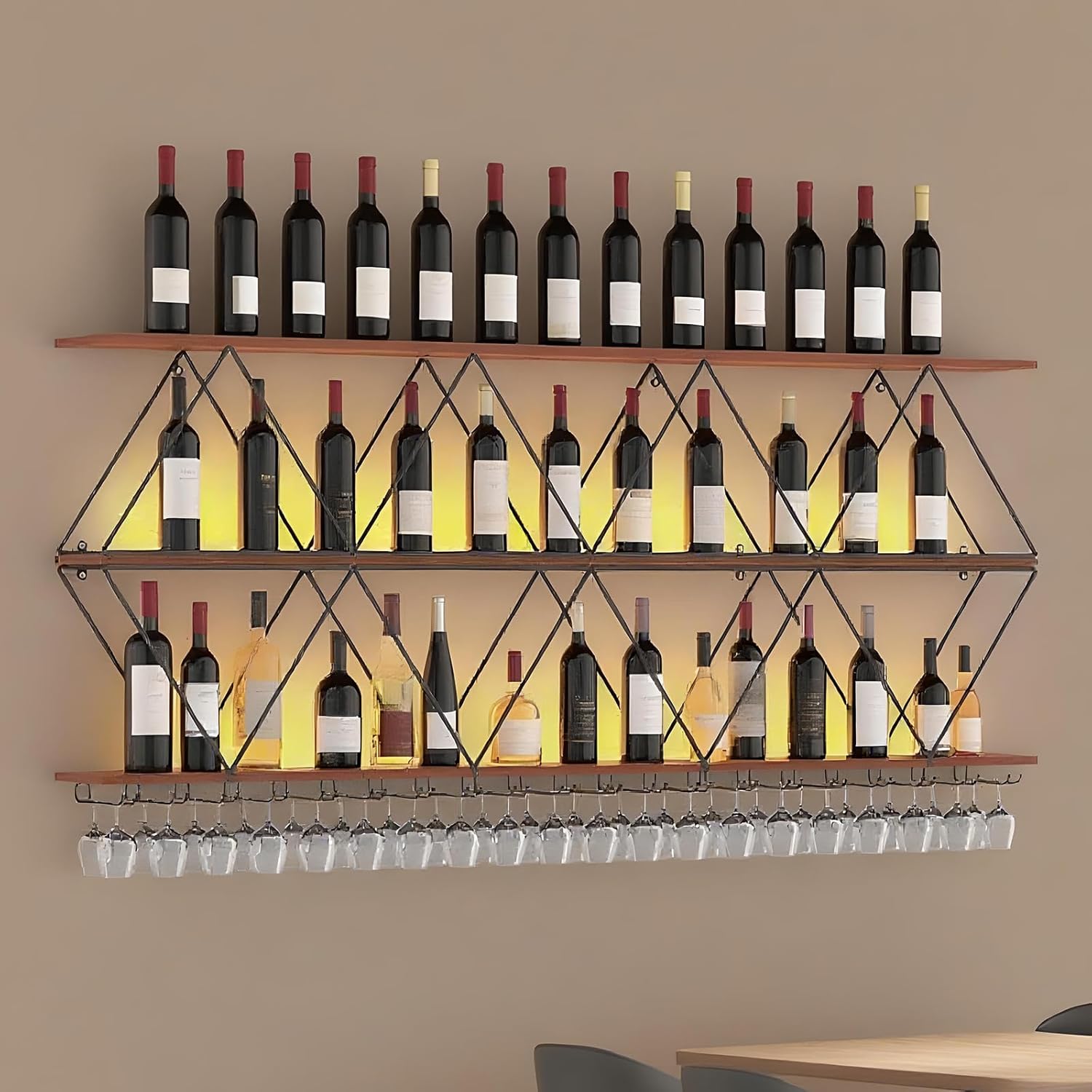 • Multi-function: Well-designed wine glass rack for wine glasses and free placement of wine. This wall-mounted wine rack can not only store wine bottles, but also other items to make your space more sophisticated.