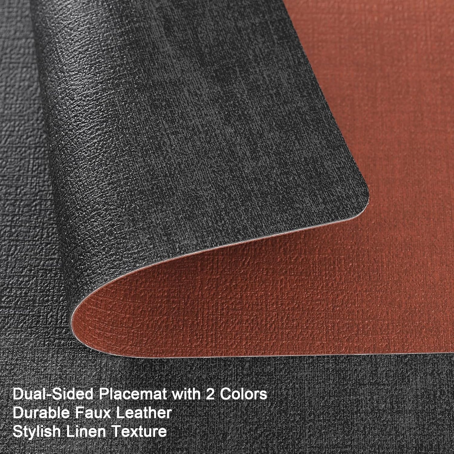 • These placemats are made of faux leather, the sufface texture imitate the linen. Unlike woven or fabric placemats, these placemats are water resistant, they can block the sauce or any liquids to protect the desktop.