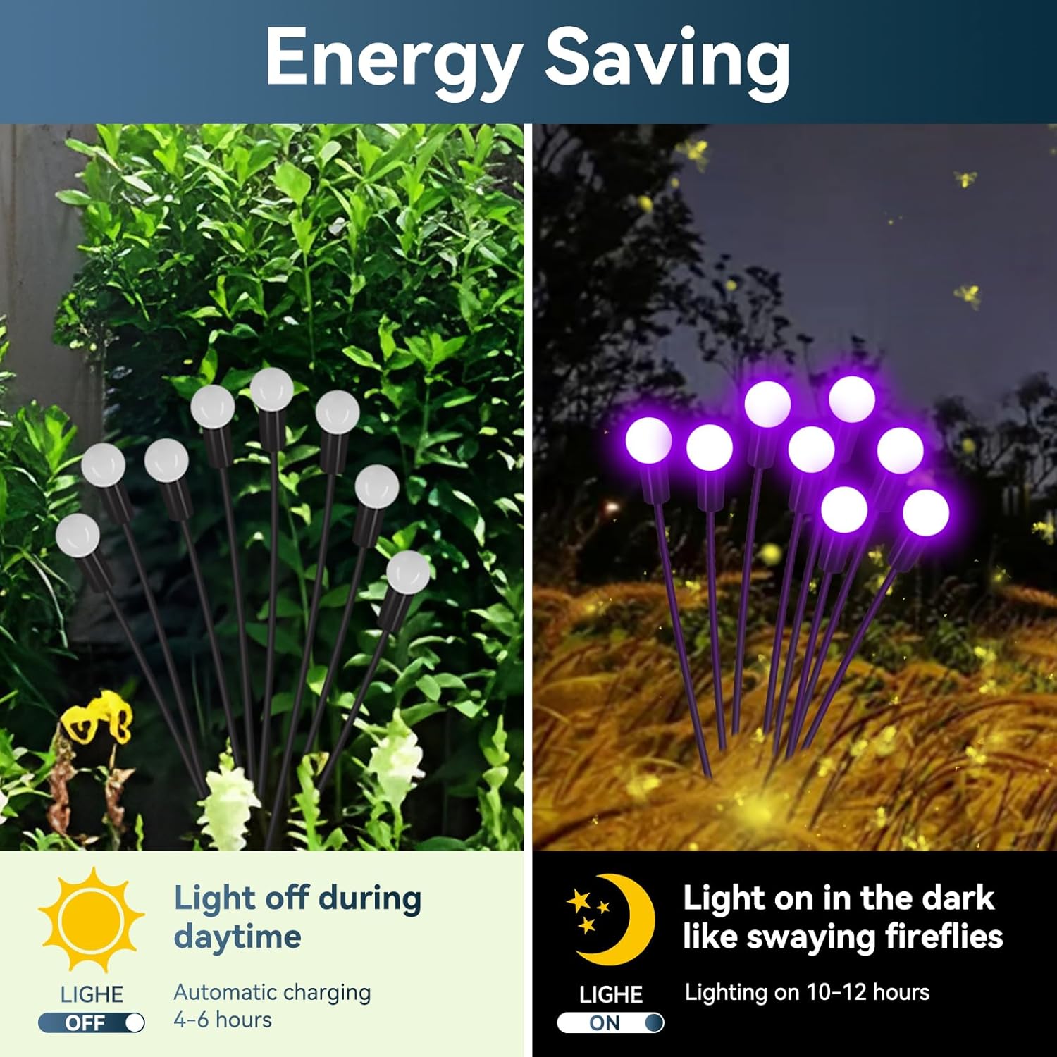 • Solar Garden Lights with Firefly Designed - The solar garden lights with high quality for garden decor, designed with soft and flexible branches to sway and dance when wind blows. This outdoor lights flying in the dark night like a firefly, make you feel relaxing and entertaining. Add a lot of vitality to your garden and create a romantic atmosphere.