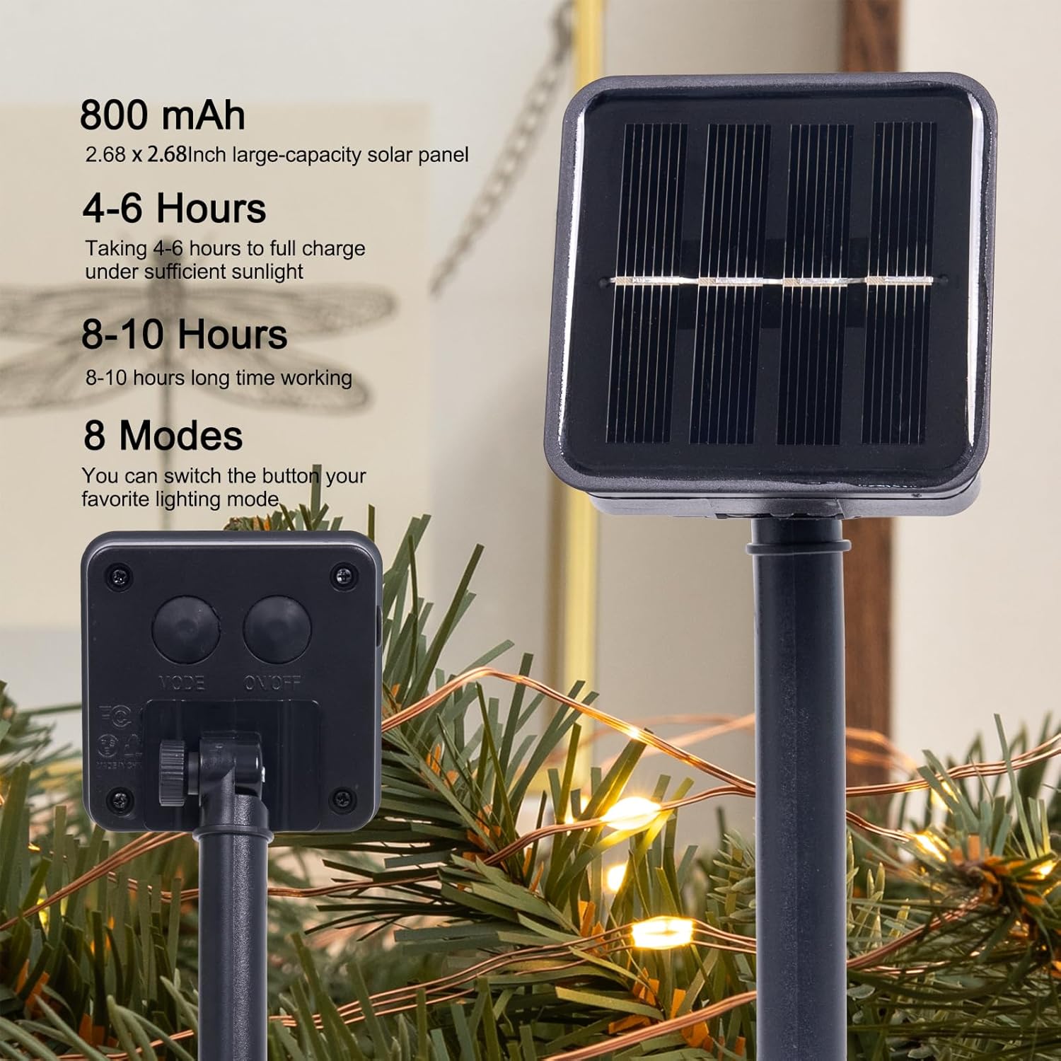 • Continuous Shining Day and Night: Advanced battery technology ensures sufficient power, even on cloudy days can continue to shine, up to 6-8 hours of lighting time at night.Built-in overcharge protection ensures year-round reliability for gardens/patios/porchs