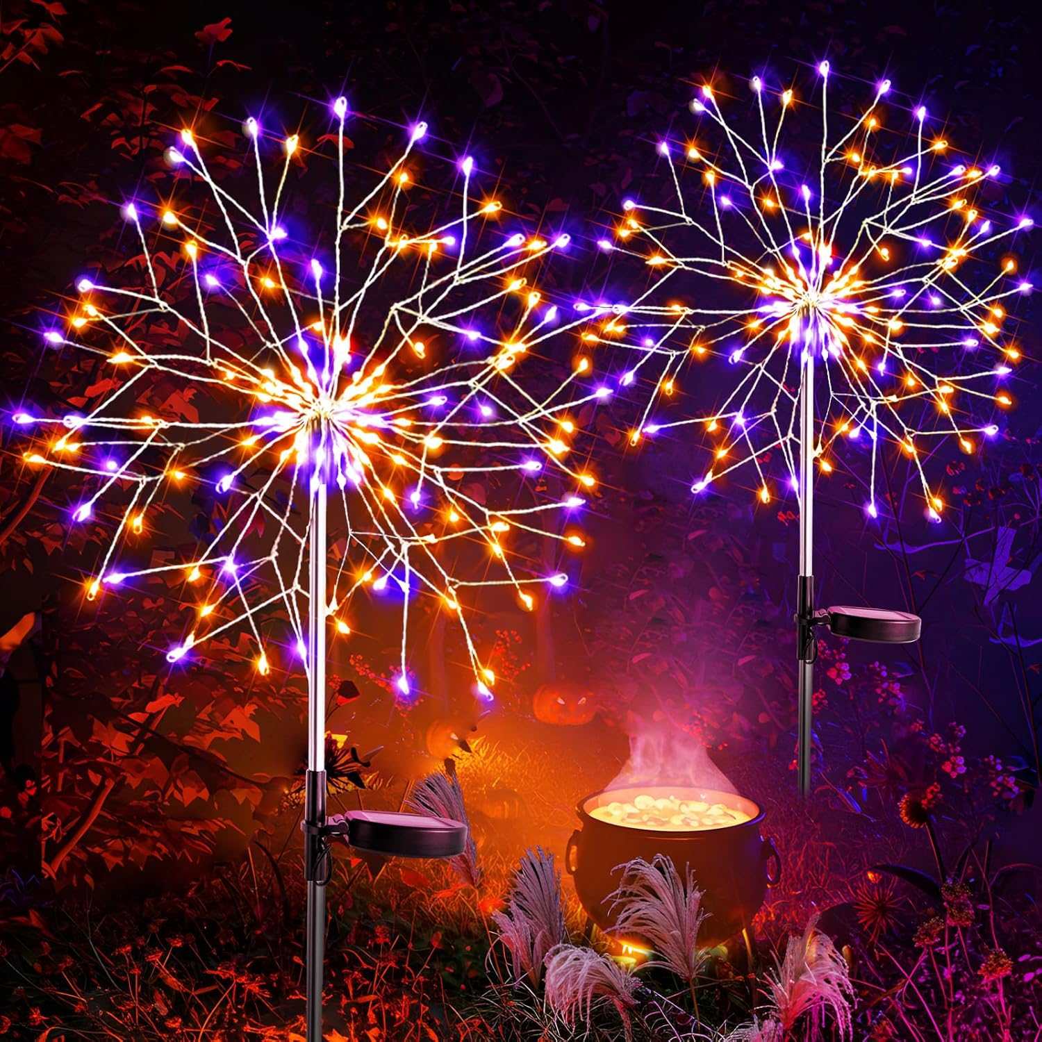 suddus Solar Halloween Lights Outdoor Solar Powered, Upgrade 2-Pack Orange & Purple Solar Firework Lights, Waterproof Garden Light for Yard Pathway Patio Flowerbed Halloween Decorations