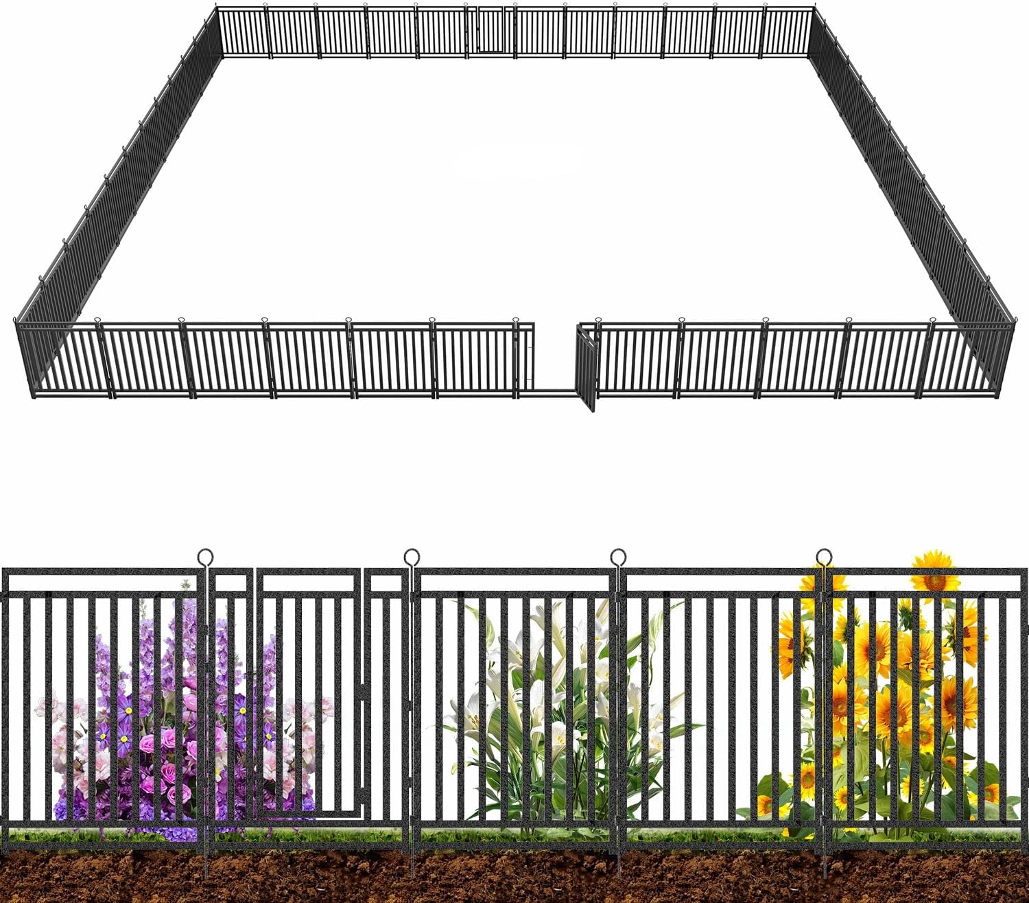 • Versatile Design: The Decorative Garden Fence measures 110ft (L) × 32in (H), including 42 panels and 6 gates, perfect for creating animal barriers and decorative boundaries in yards, patios, and flower beds.