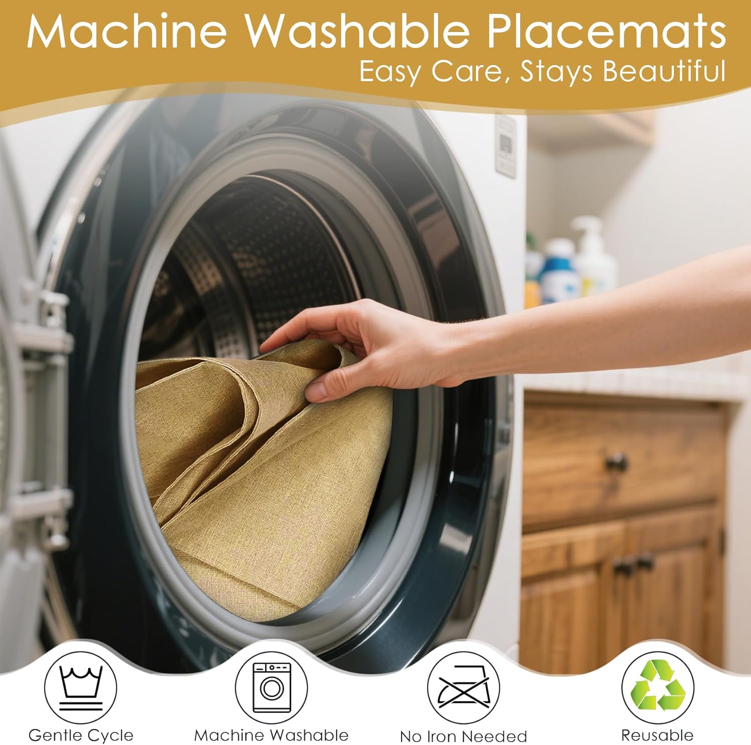 • Effortless Cleaning & Care: These machine washable placemats are easy to clean and maintain - simply use a gentle cycle and smooth with a low-temperature iron when needed. No hassle, just simple upkeep for everyday use.