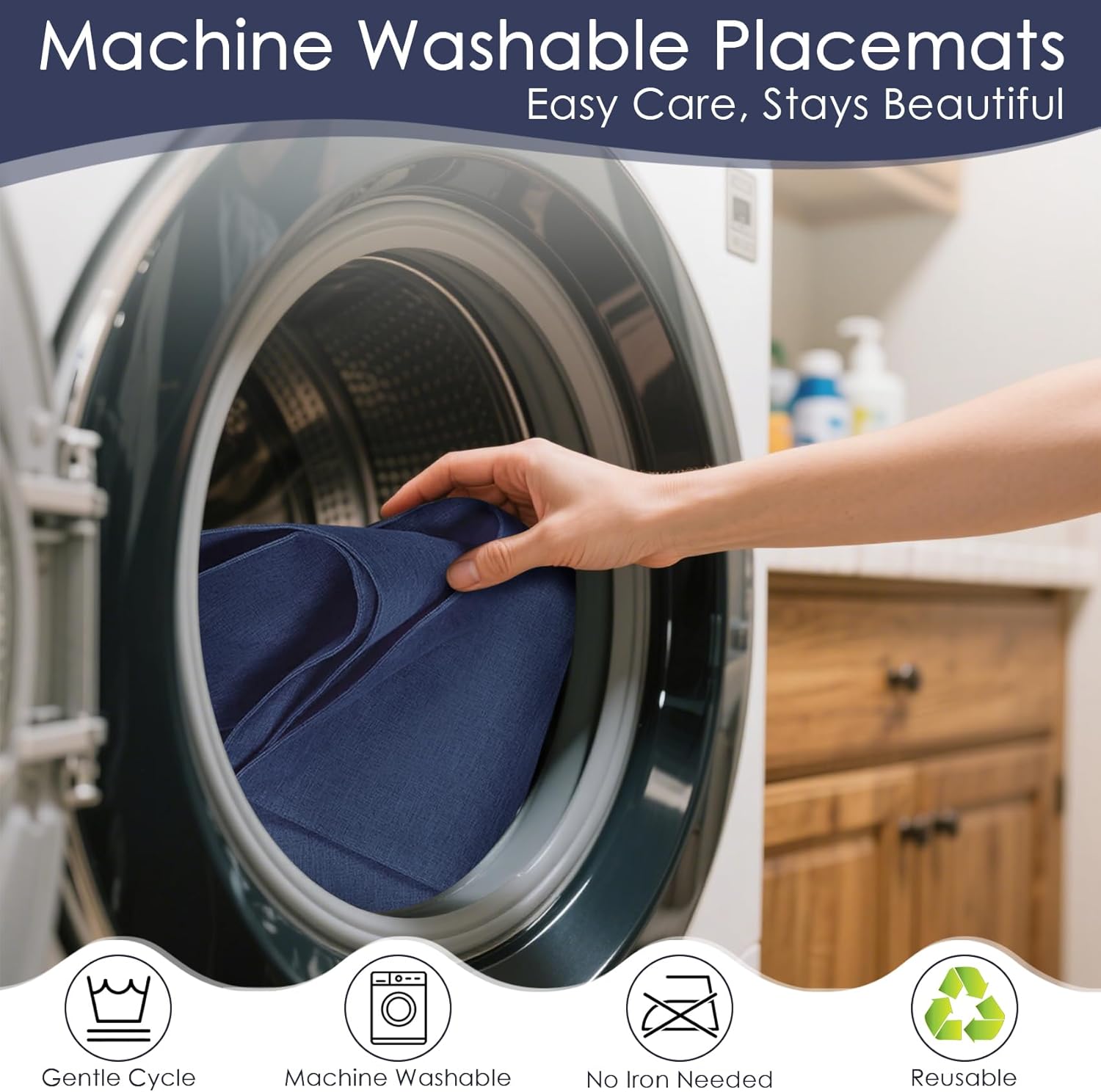 • Effortless Cleaning & Care: These machine washable placemats are easy to clean and maintain - simply use a gentle cycle and smooth with a low-temperature iron when needed. No hassle, just simple upkeep for everyday use.
