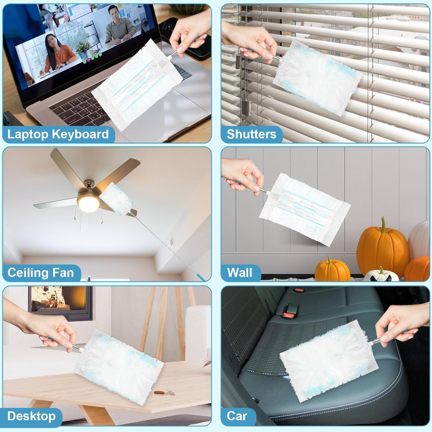 • 【4x Strong Electrostatic Adsorption】 Before using the for swiffer dusters refill, shake the microfiber feathers evenly. They are made up of thousands of soft, dense fibers, giving the fiber surface strong electrostatic attraction under a fluffy texture. Additionally, a special coating is applied to enhance the static electricity, enabling efficient adhesion and capture of fine dust, debris, pet hair, and other particles on various surfaces, securely locking them in place.