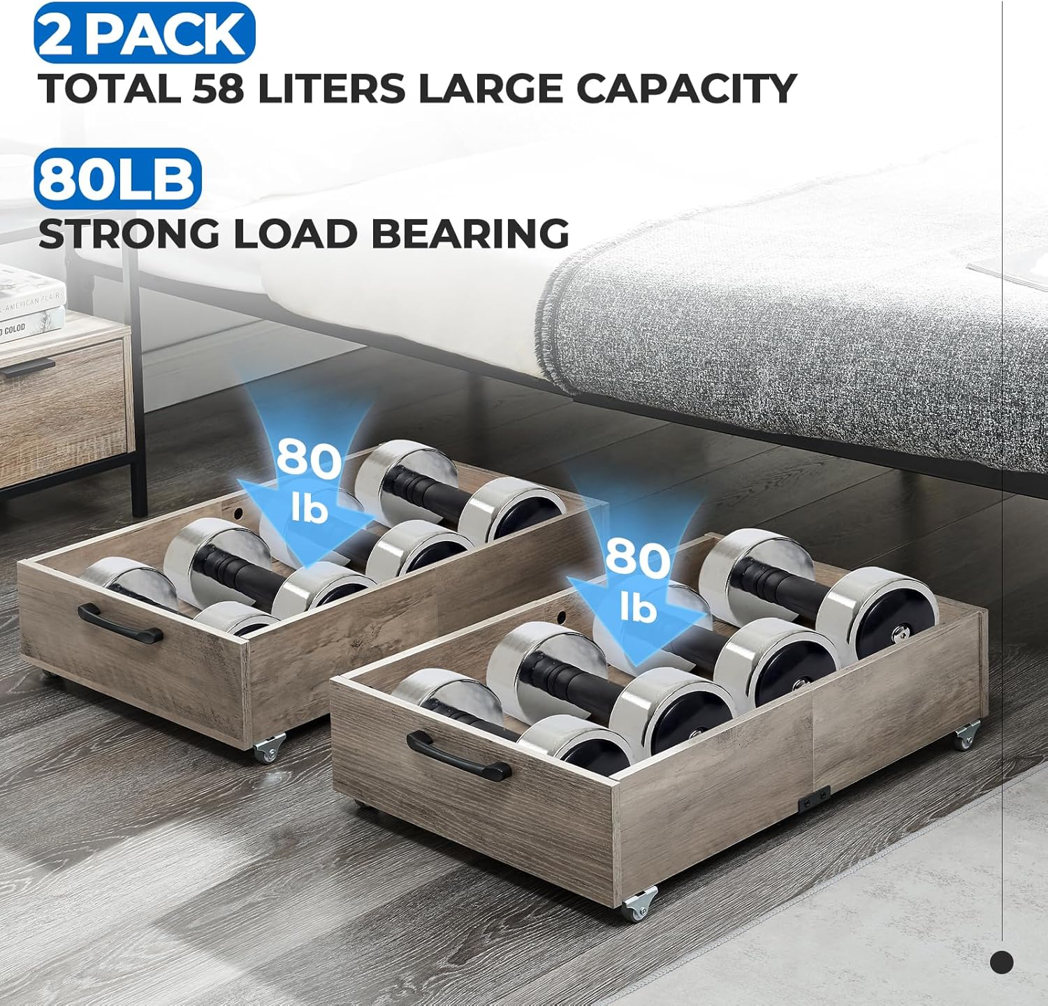 • 【Massive 58L Storage Capacity (Set of 2)】: Maximize your hidden space! This 2-pack set provides a 58L total volume to effortlessly store off-season clothes, shoes, linens, or toys—keeping your bedroom clutter-free and organized