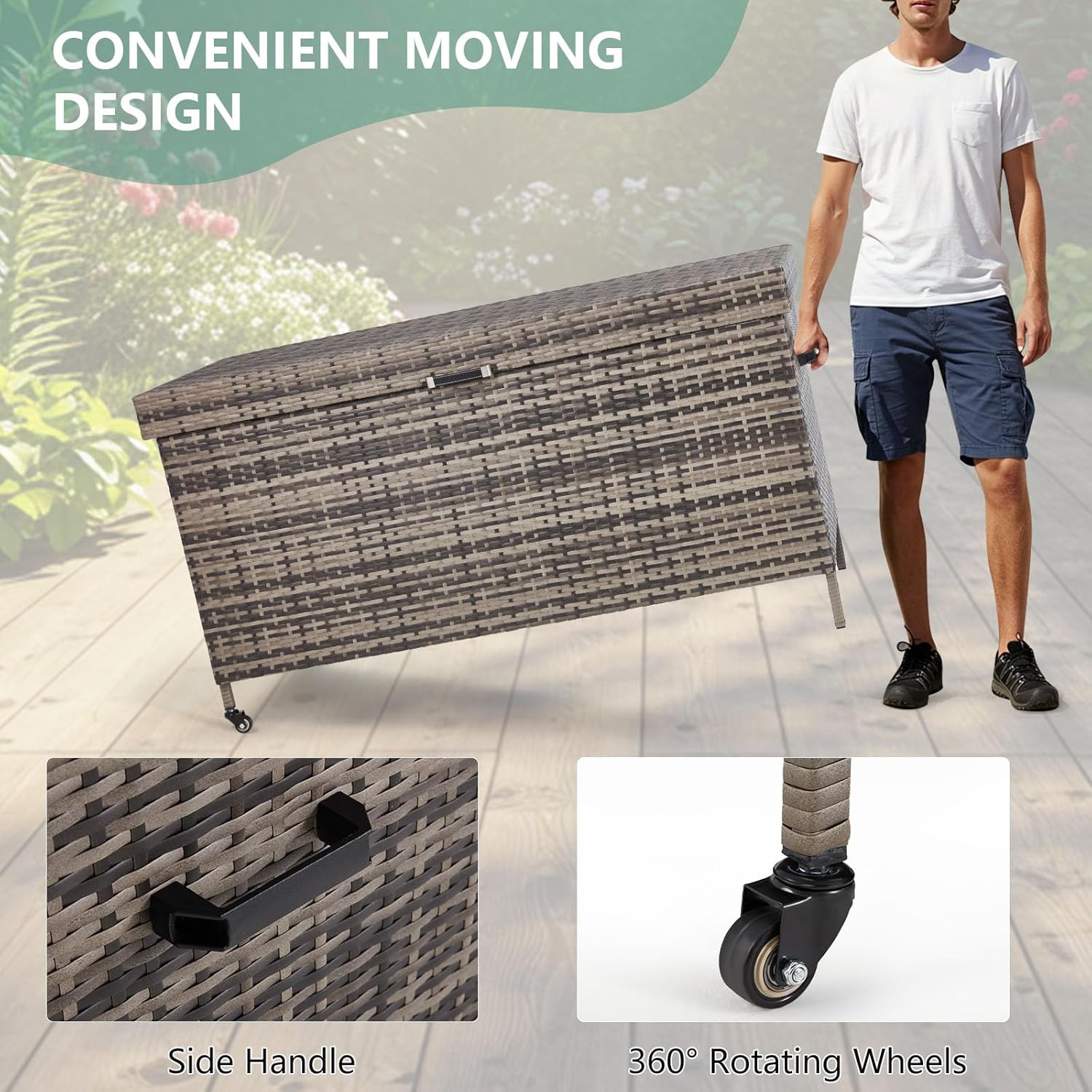 • Handcrafted Wicker Weaving: Our waterproof 240 gallon deck box is made from a selection of uv- and fade-resistant polyethylene rattan, these bins can withstand all weather conditions. To prolong the life of your rattan storage box, we recommend that you keep your storage box indoors when it is raining heavily
