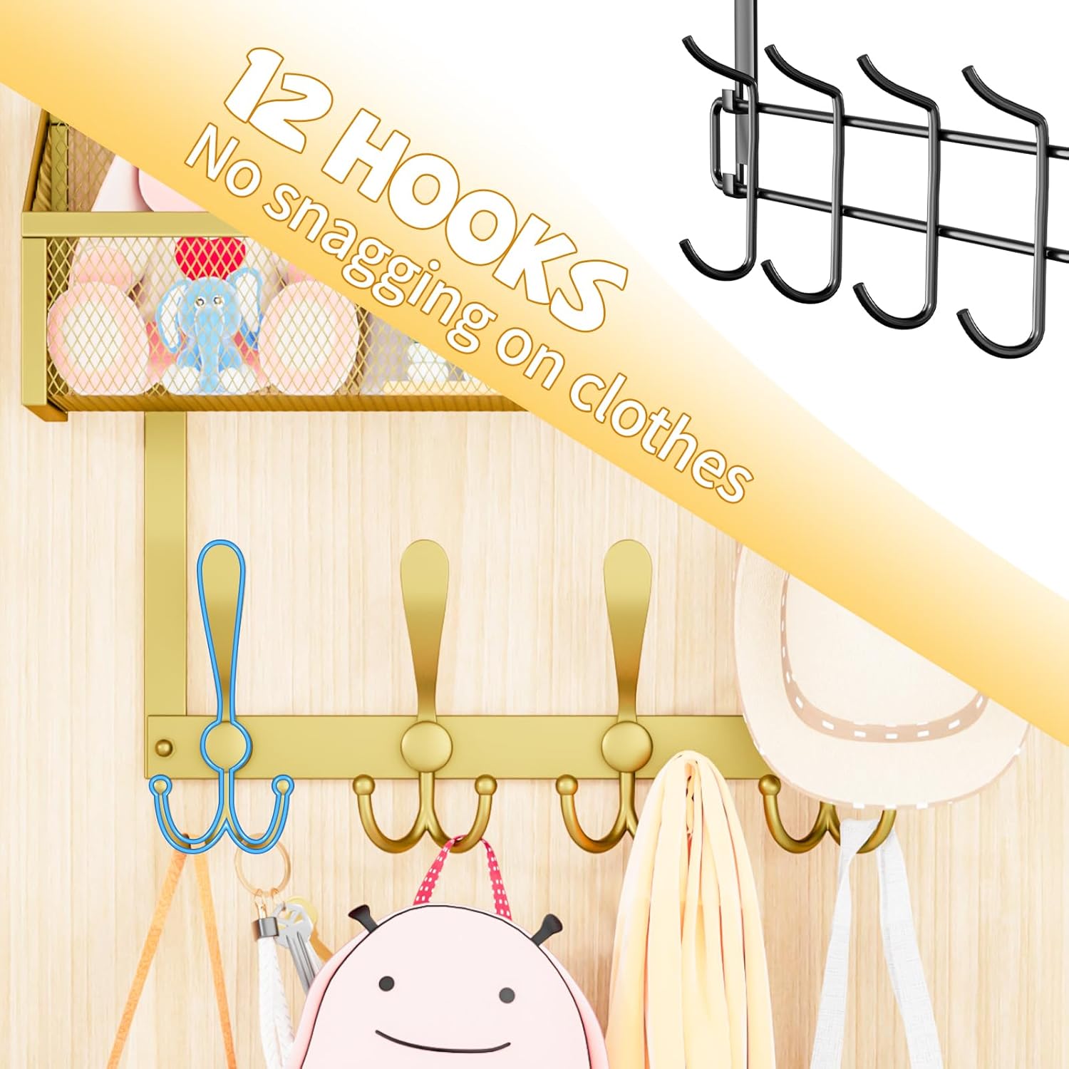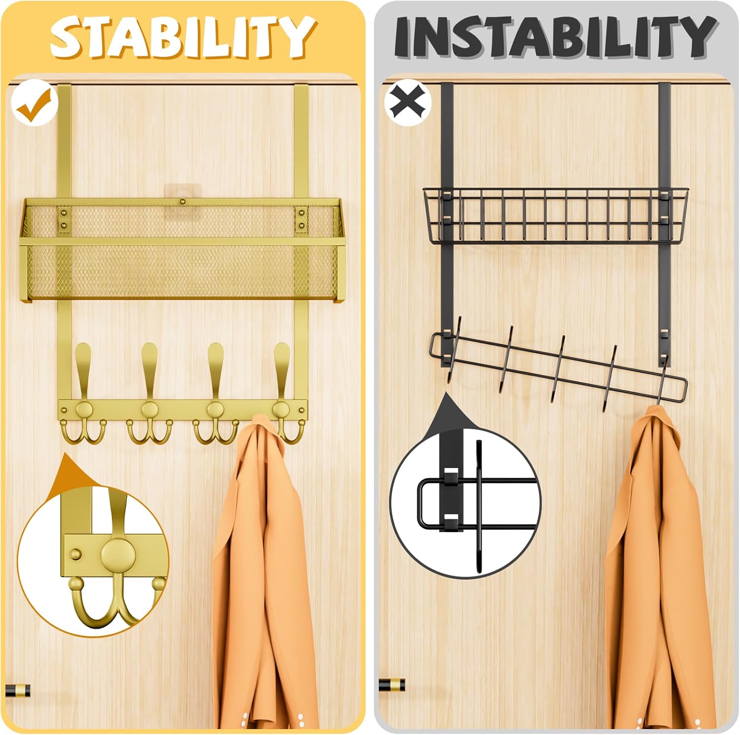 Over The Door Hooks Organizer, Coat Rack Over The Door Storage Hanger Towel Rack, Back of Storage Organizer for Bathroom,Bedroom,Kitchen,Office(Gold 2-Tier)