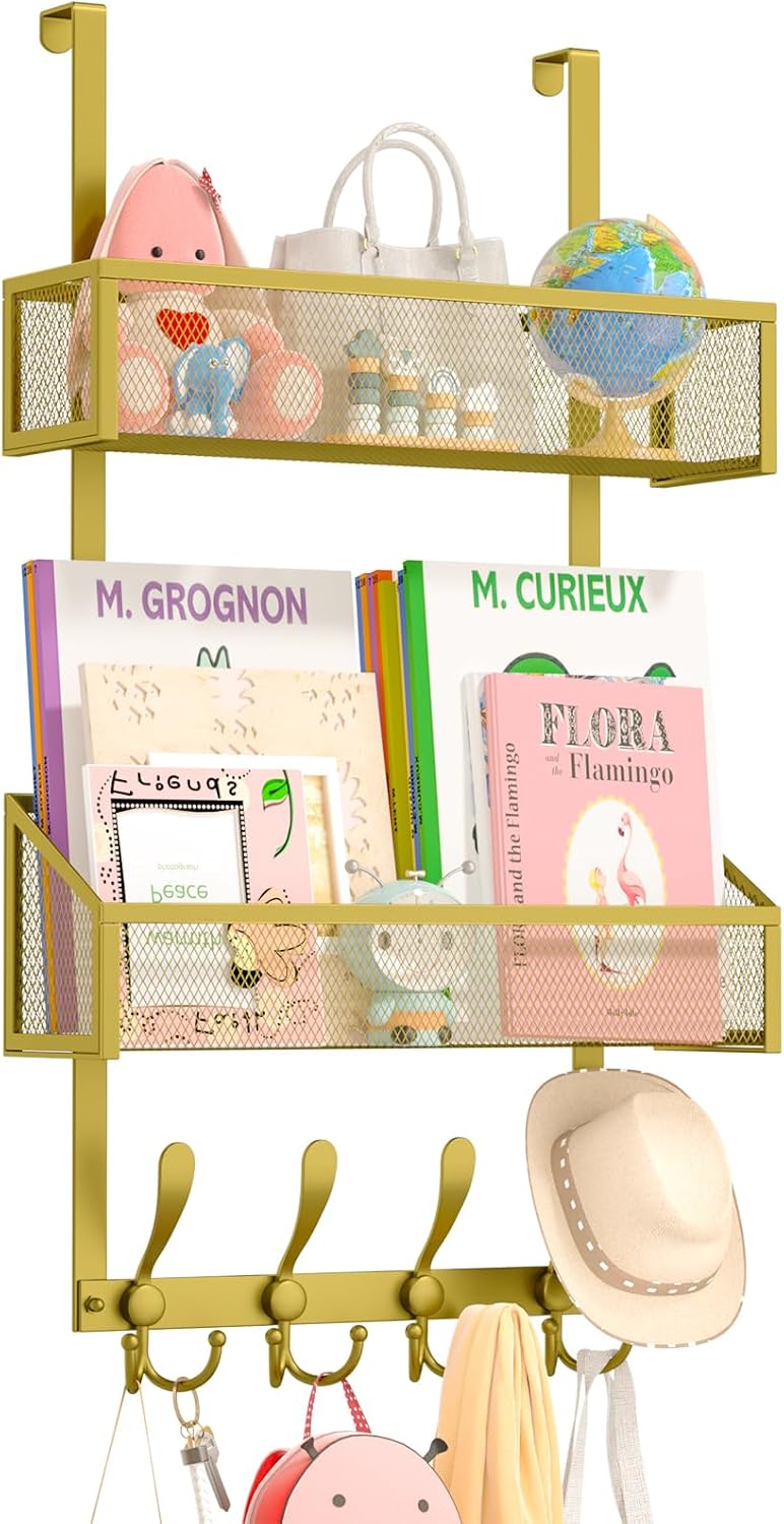 Over The Door Hooks Organizer, Coat Rack Over The Door Storage Hanger Towel Rack, Back of Storage Organizer for Bathroom,Bedroom,Kitchen,Office(Gold 3-Tier)