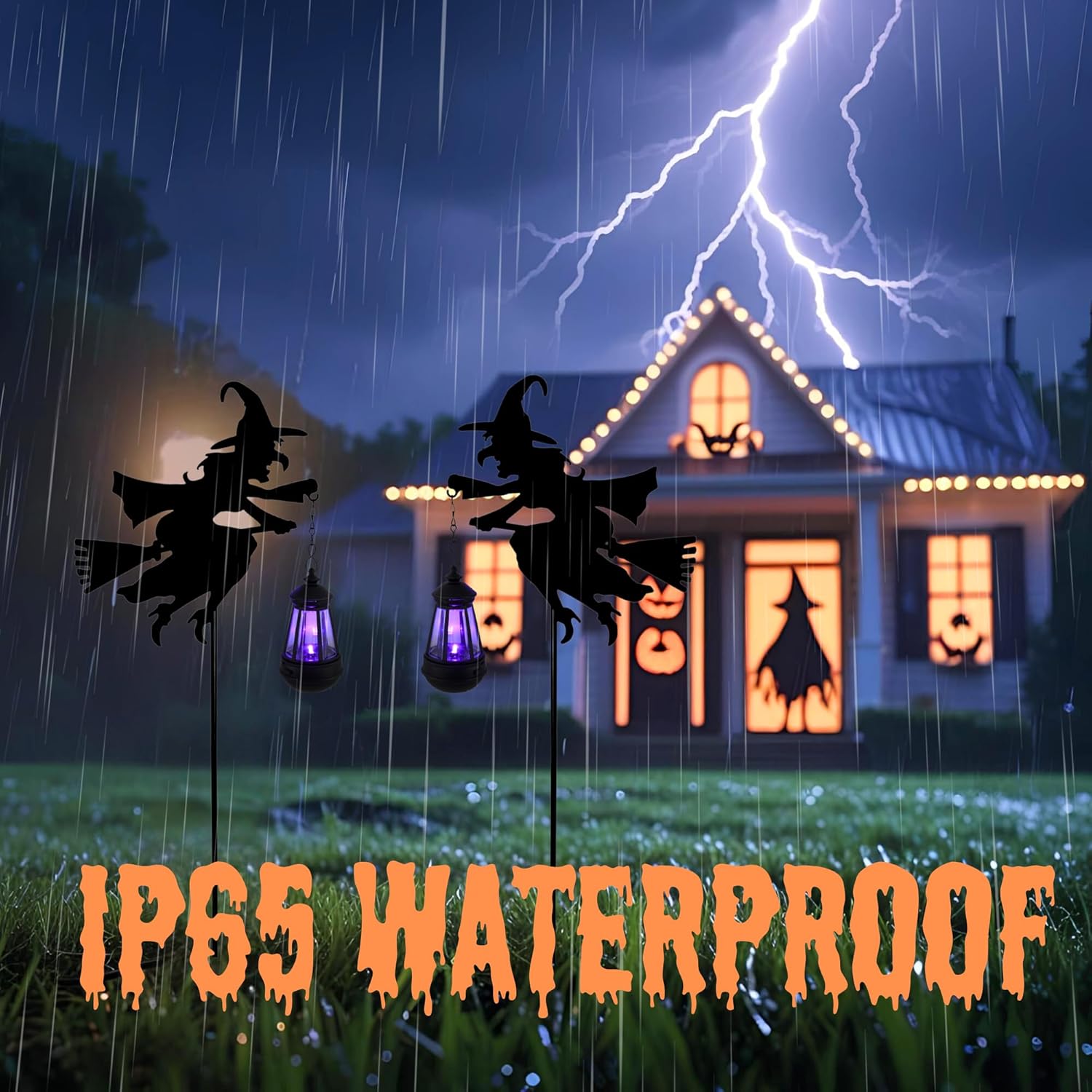 Fairy Garden Accessories Lawn Ornaments 1 Pair - Solar Lights Halloween Decorations Outdoor Garden Statue, Metal Stakes Decorative Figurines for Yard Decor, Patio (Witch)