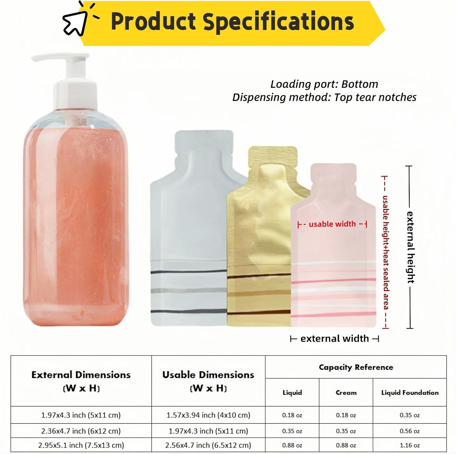 100 Pack 1.97x4.3 inch Heat Seal Sample Mylar Packets for Portable Travel Toiletries Empty Disposable Liquid Shampoo Pouch Single Serving Coffee Powder Condiments Food Storage (Pink)