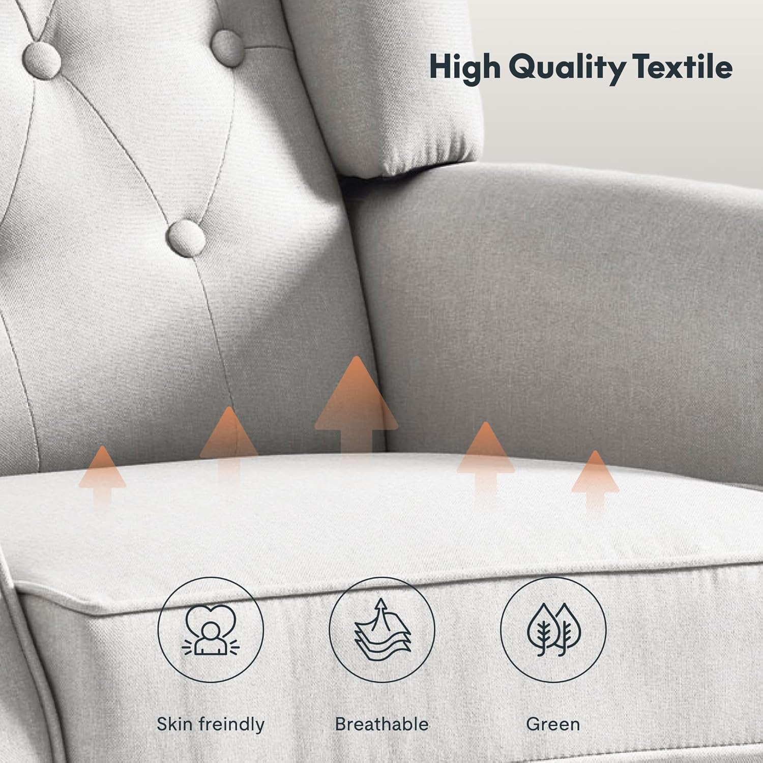 Softa Recliner Chair for Adults, Mid Century Wingback Pushback Accent Chair with Rivet Decoration, Tufted Upholstered Single Sofa Armchair for Living Room, Bedroom, Study (Fabric, Cream)