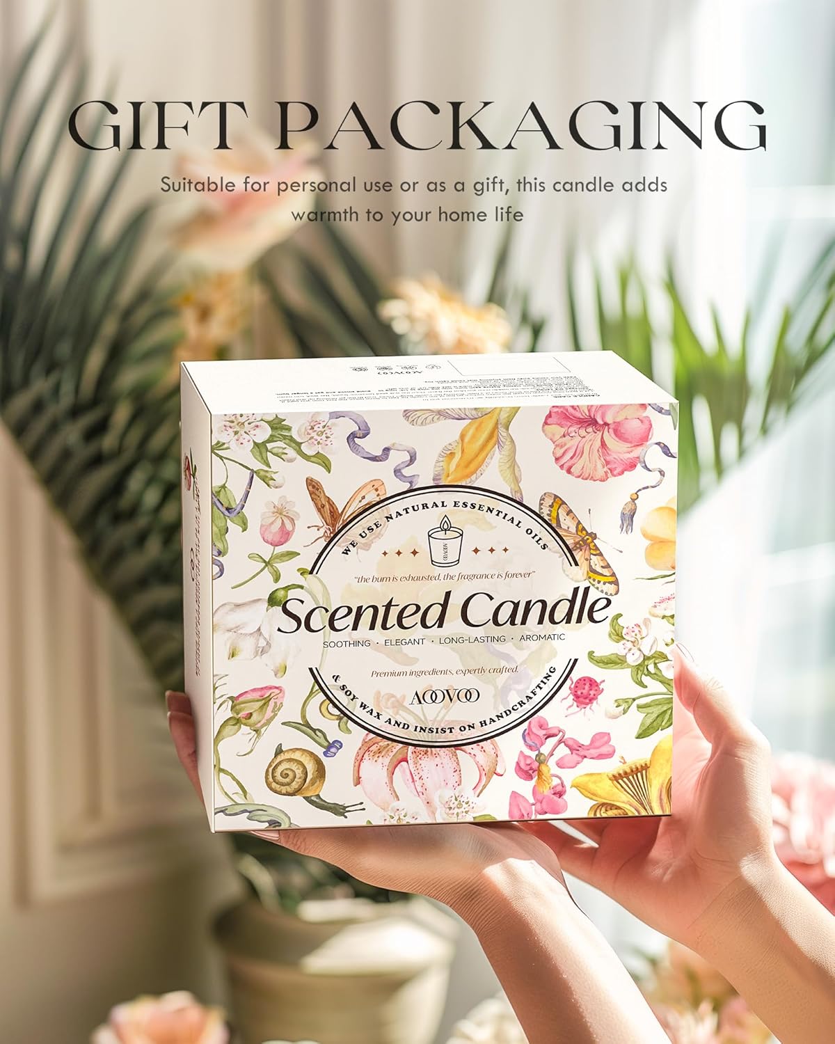 • Perfect for Gifting: No extra wrapping needed. Presented in an elegant gift box with beautifully crafted glass jar candles and gold foil labels, boasting an array of delightful scents that make this gift truly special.