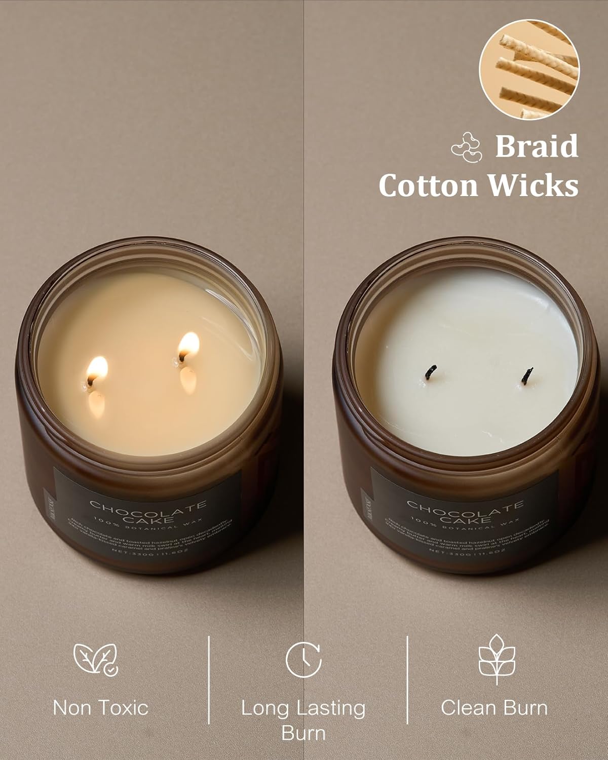 M&SENSE Chocolate Layer Cake Scent Candles, Large 11.6oz Natural Soy Wax 70 Hours Burn Time Clean Non Toxic Scented Classic 2 Wicks Candle for Bedroom Living Room Office