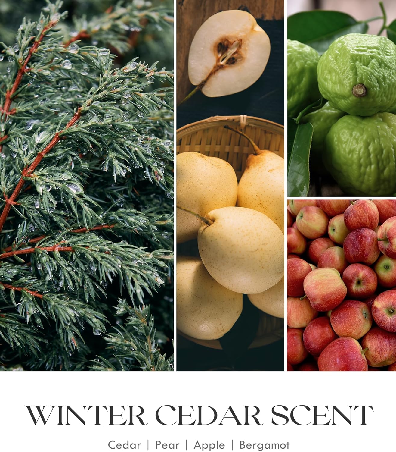 • HIGHLY SCENTED CEDAR CANDLE: Christmas Pine Scented CandleInfused with the enchanting scent of crisp pear, juicy apple, and bright bergamot, layered with fir, pine, and warm cedarwood, this candle captures the heart of a snowy forest retreat. Finished with amber undertones, it's the perfect Christmas candle to create a peaceful winter escape at home. Whether you're decorating for the holidays or searching for Christmas gifts for women or mom, this scented candle delivers seasonal comfort and luxury