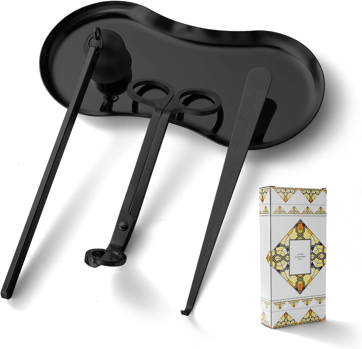 • Professional 4-in-1 Candle Care Kit: Your essential set includes a Candle Snuffer, Candle Wick Trimmer, Candle Wick Dipper,and Tray Plate. Perfectly sized tools ensure effortless, smoke-free extinguishing, clean wick trimming, and precise wick positioning for safer, cleaner candle burning and extended candle life. Comes in a stylish gift package.