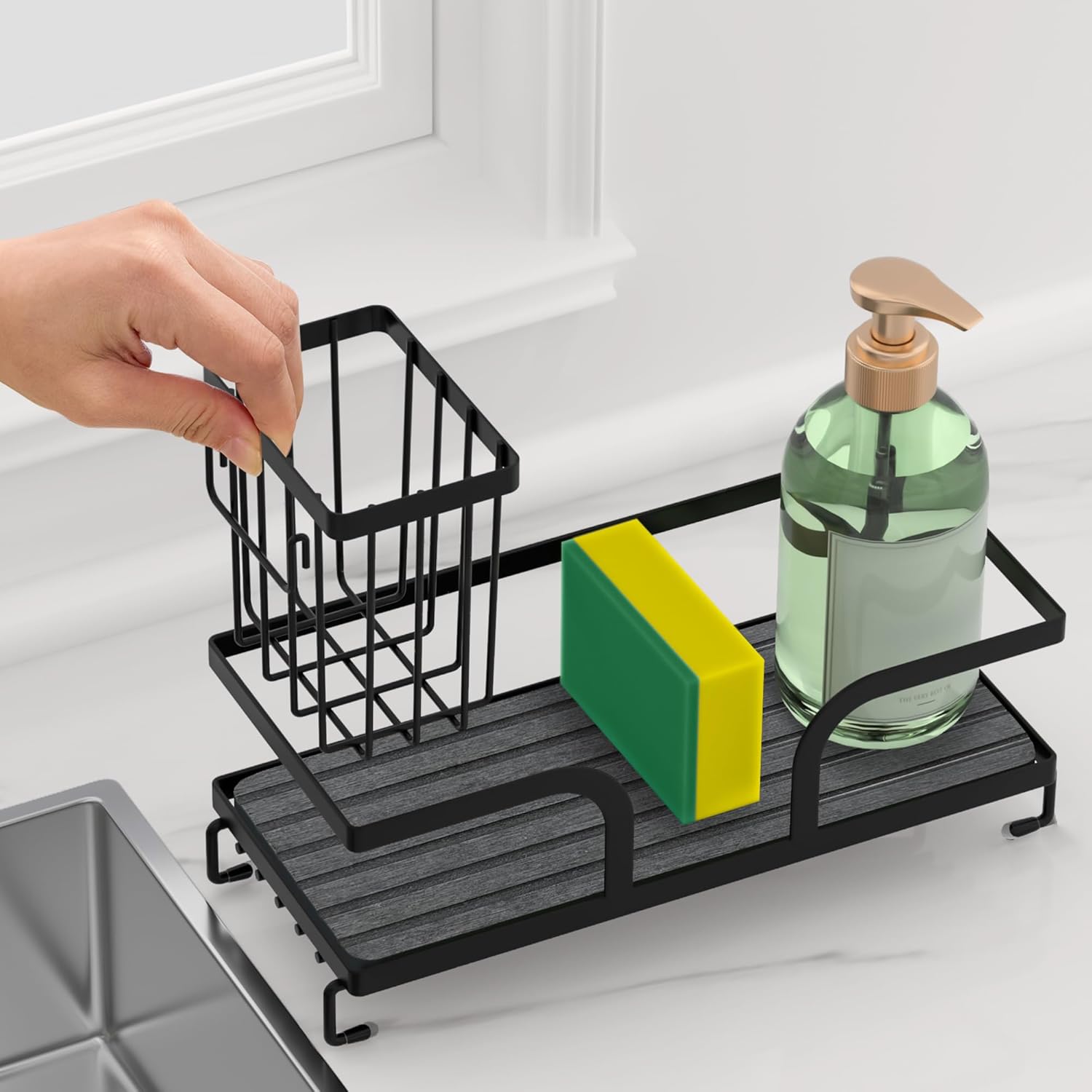 Sponge Holder for Kitchen Sink,Sink Caddy Organizers with Stone Drying Tray, Kitchen Sink Organizer for Sponges, Soap, 9.7" x 4.2"x 3.2" Home Decor Storage and Organization,1PCS Black