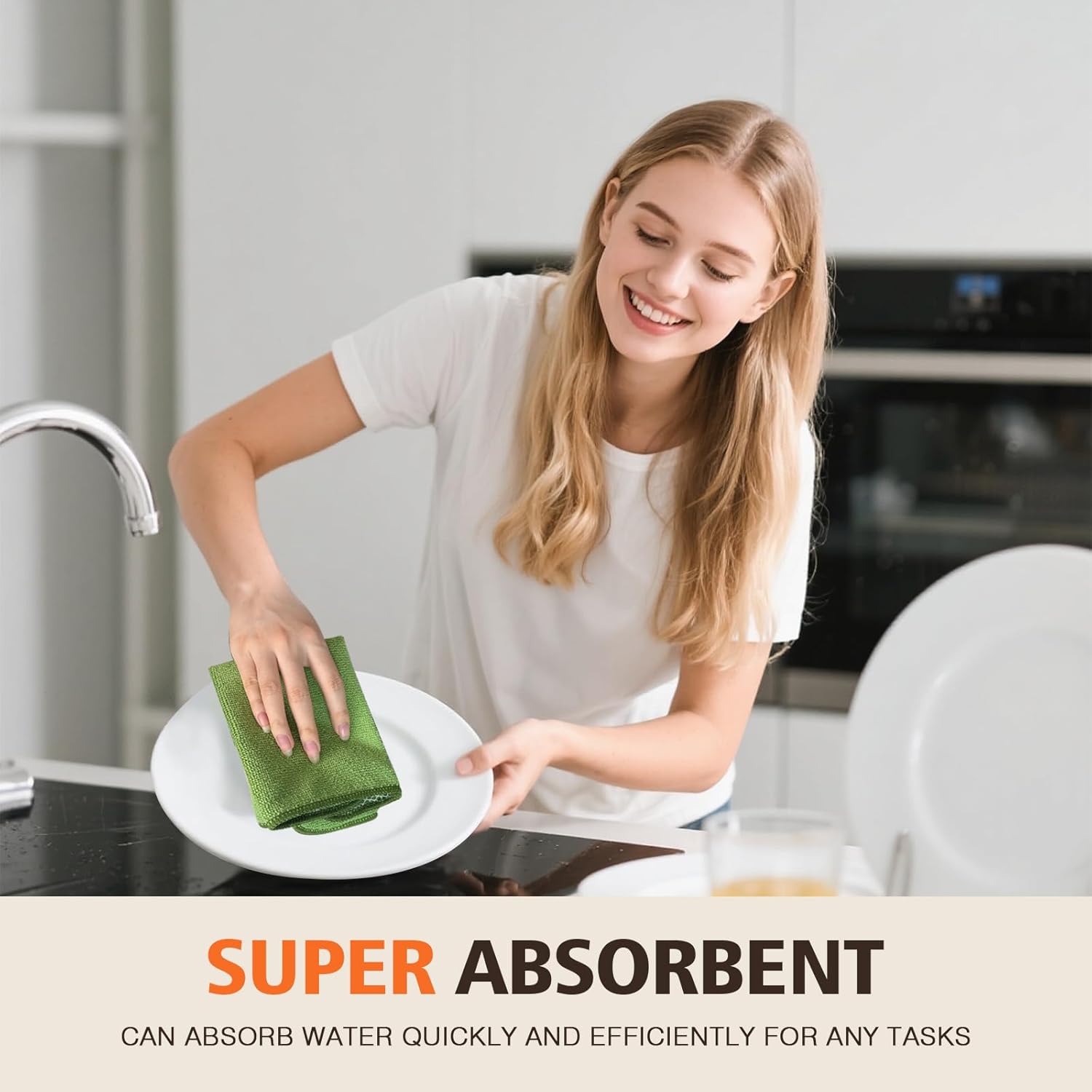 KinHwa Kitchen Washcloths for Dishes Absorbent Microfiber Dish Cloths Quick Dry Dish Rags with Poly Scour Scrub Side Ideal for Kitchen Cleaning (Green, 12inchx12inch 9 Pack)