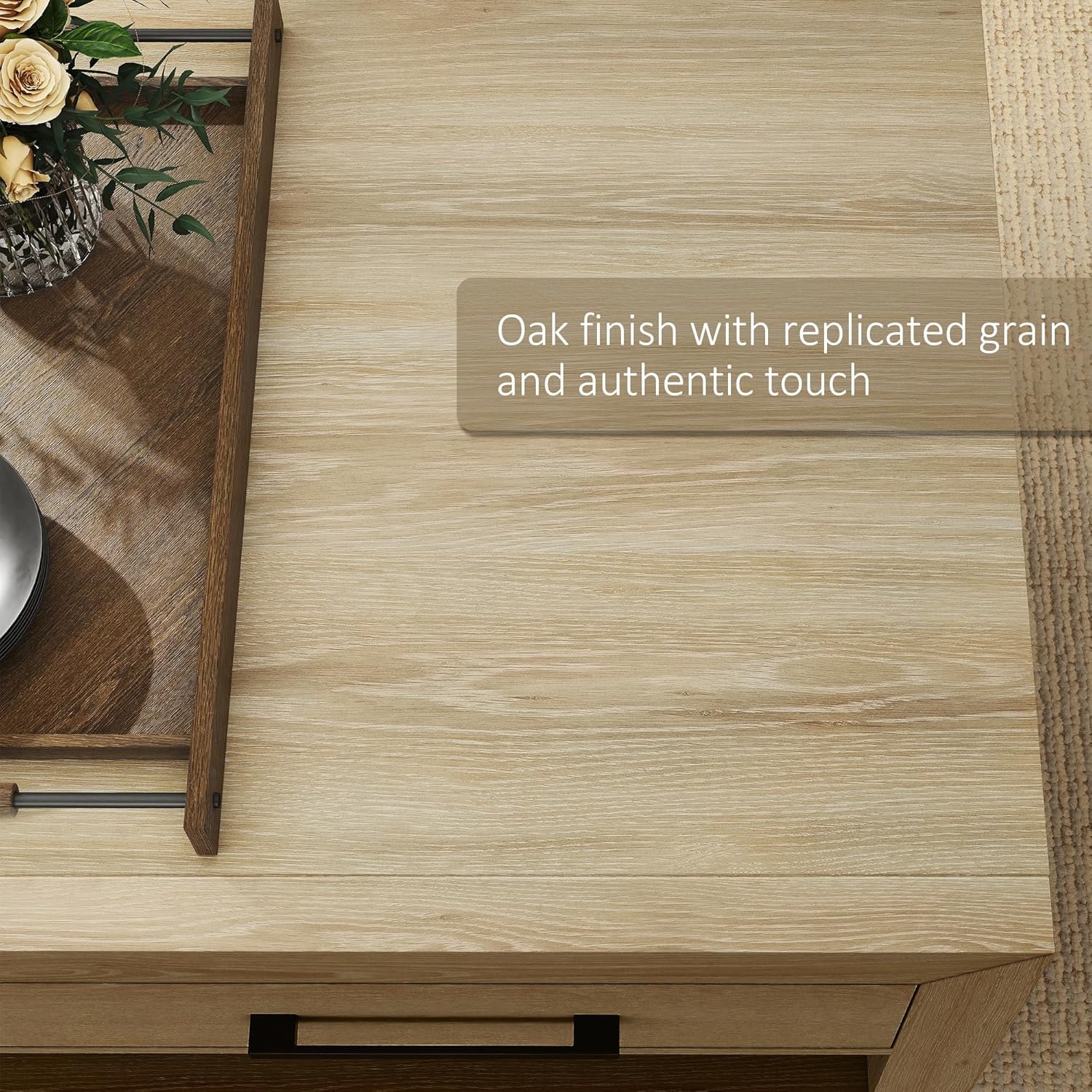 • Modern Masterpiece:Hazel collection Coffee Table, The main design uses two thickened front frames, showing the designer's wild modern style. Oak finish with replicated grain and authentic touch. The use of veneers results in high-quality furniture with flawless surfaces and consistent color tones. Size:47.2" W x 18.1" H x 25" D Weight:95 Lbs