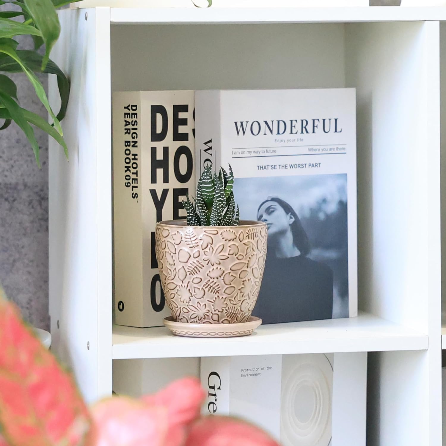 • Thoughtful Gift for Plant Enthusiasts:The Ceramic Plant pots with Drainage Hole and Saucer for plants indoor Designed with charming leaf , flower, and plant motifs, these planters make excellent gifts for plant lovers. Suitable for occasions such as birthdays, anniversaries, housewarmings, Thanksgiving, Christmas, and more.