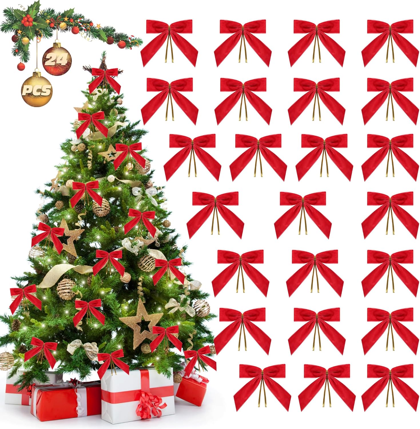 • Fade-resistant and Durable Bow Tie Set:Unlike cheap ornaments, these velvet bow ornaments are treated with color-lock technology to prevent fading under bright lights. Dust-resistant and easy to clean.Includes 24 premium velvet ornament bows with pre-attached satin loops for hassle-free hanging. making them an ideal Christmas velvet ornaments gift for friends and family.