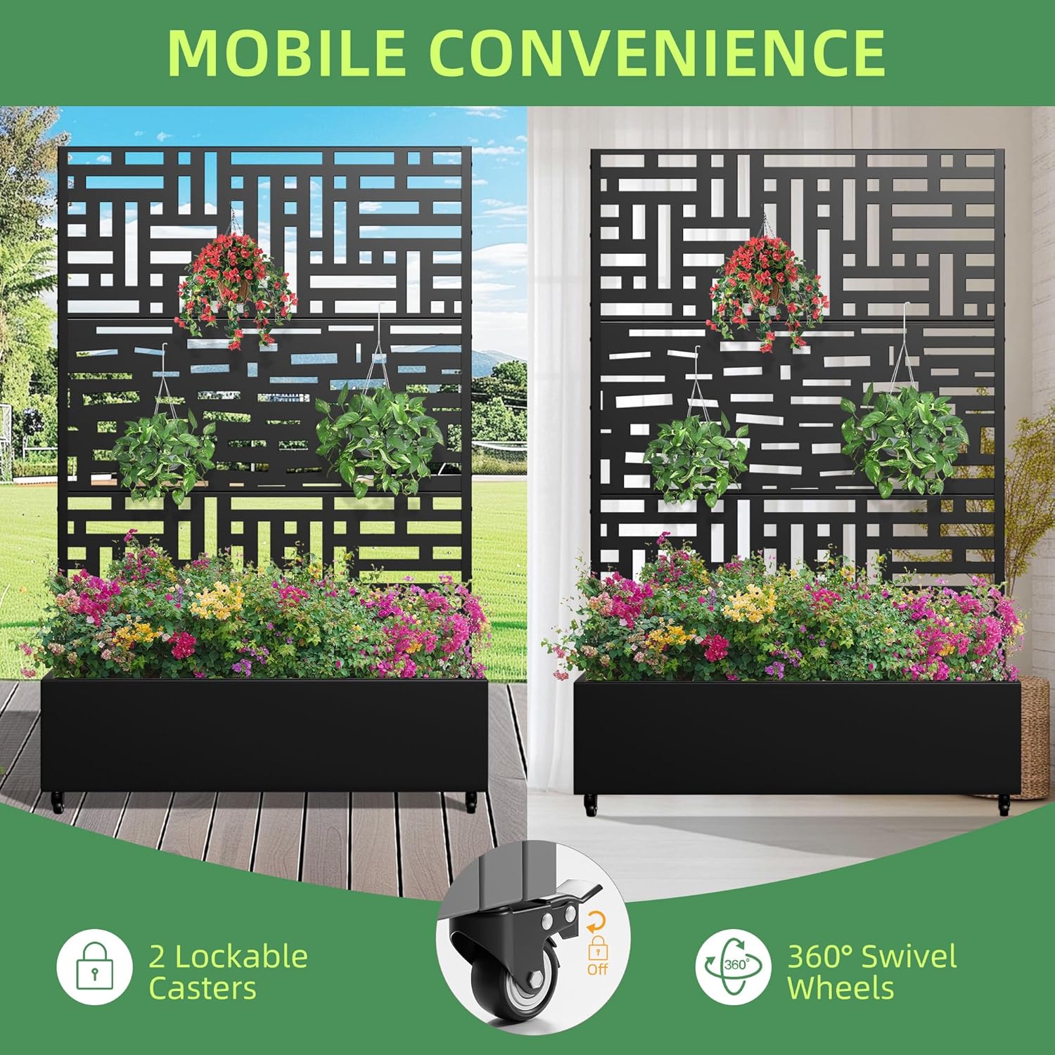• Space-Efficient Trellis Design: The integrated trellis allows you to grow climbing flowers and vegetables, maximizing vertical space and adding charm to small gardens.