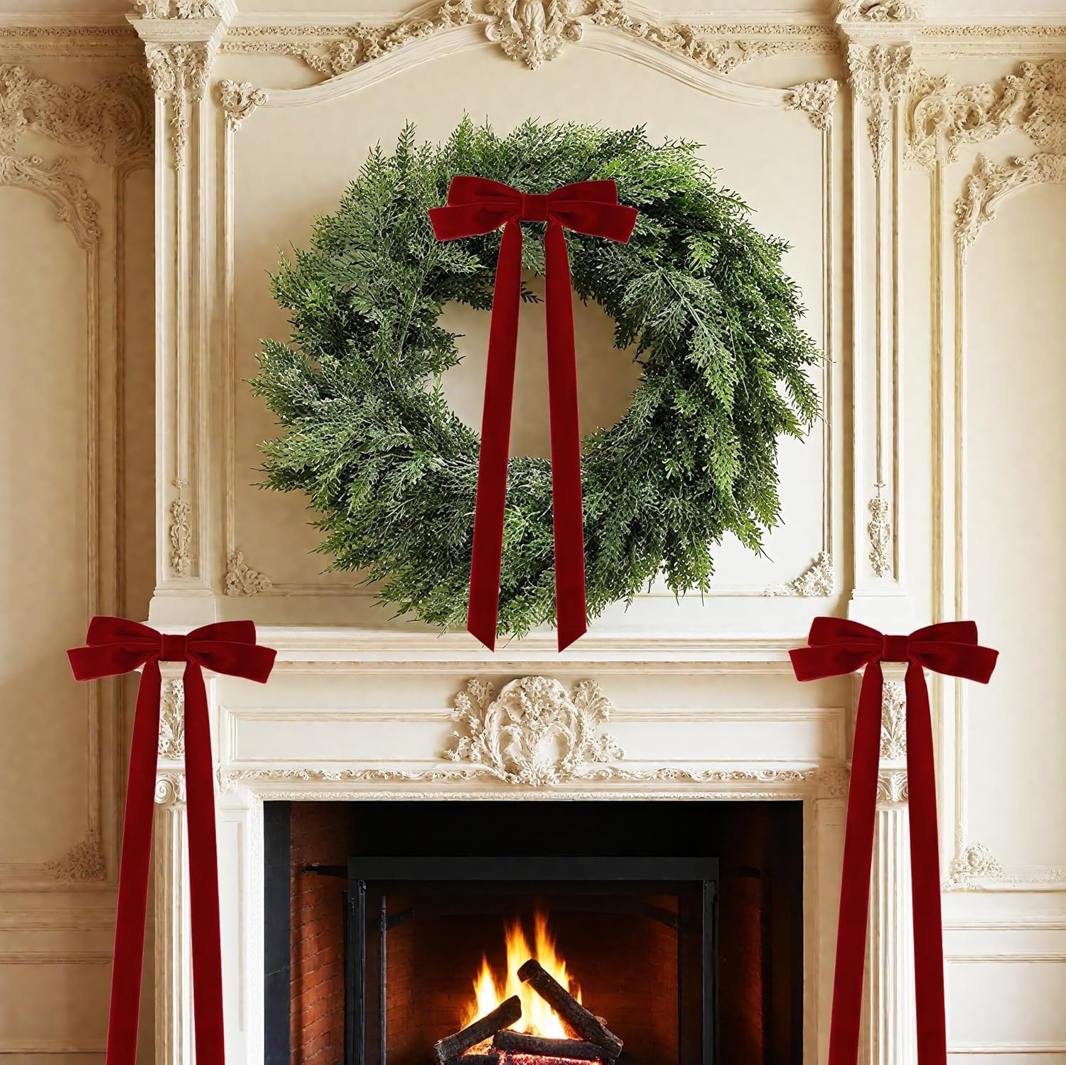 • Versatile Holiday Decor: Ideal for decorating Christmas trees, wreaths, garlands, staircases, windows, doors, porches and fences. These velvet ribbon bows instantly elevate your holiday decorations, creating a warm and joyful atmosphere for parties, gatherings and holiday celebrations.