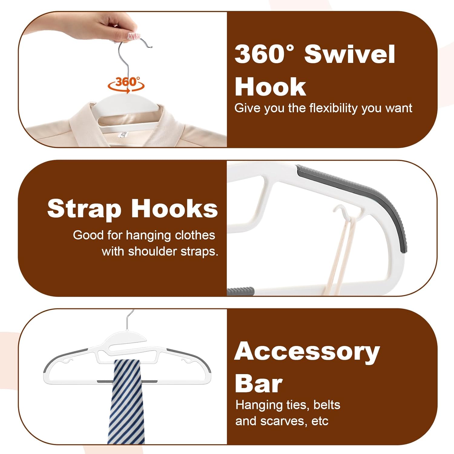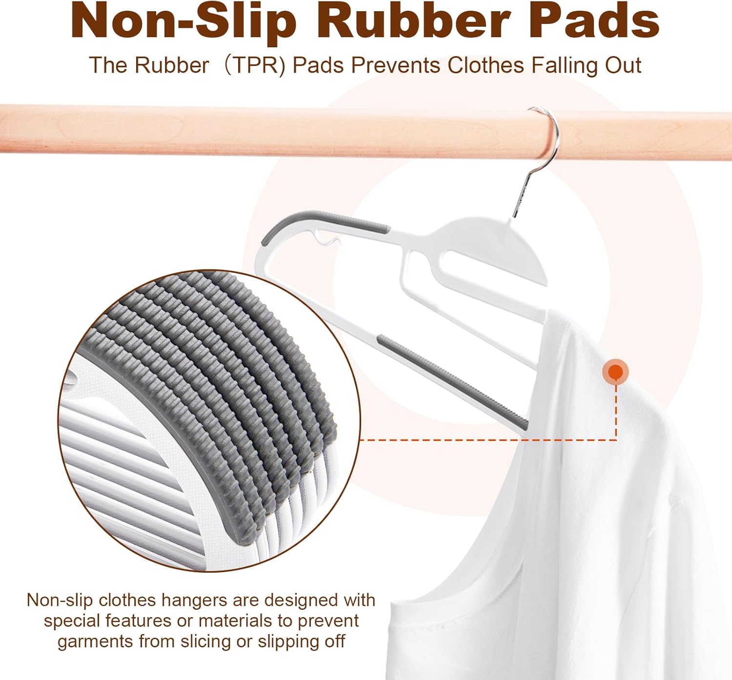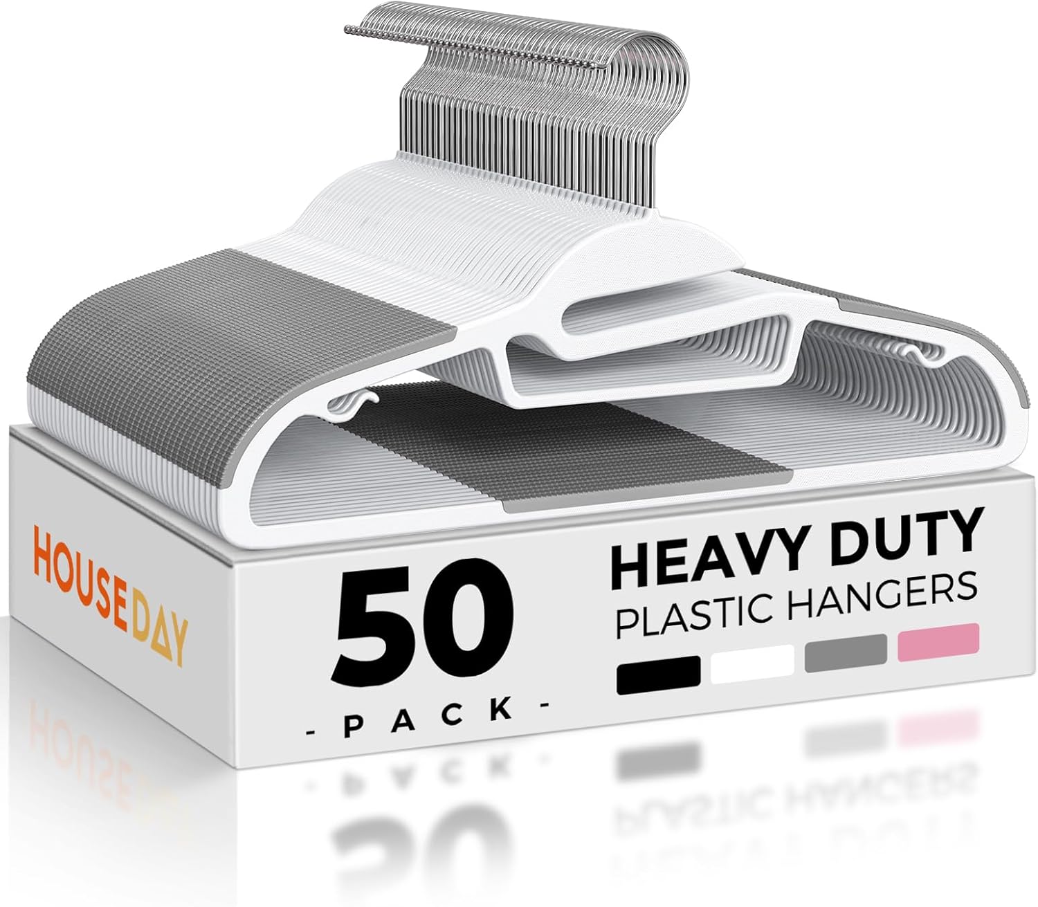 HOUSE DAY White Plastic Hangers 50 Pack, Slim Space Saving, Non Slip Hangers with Rubber Pads, Heavy Duty Coat Hanger for Closet, Prevent Stretching S-Shaped Clothes Hanger for Shirt, Suit, Pants