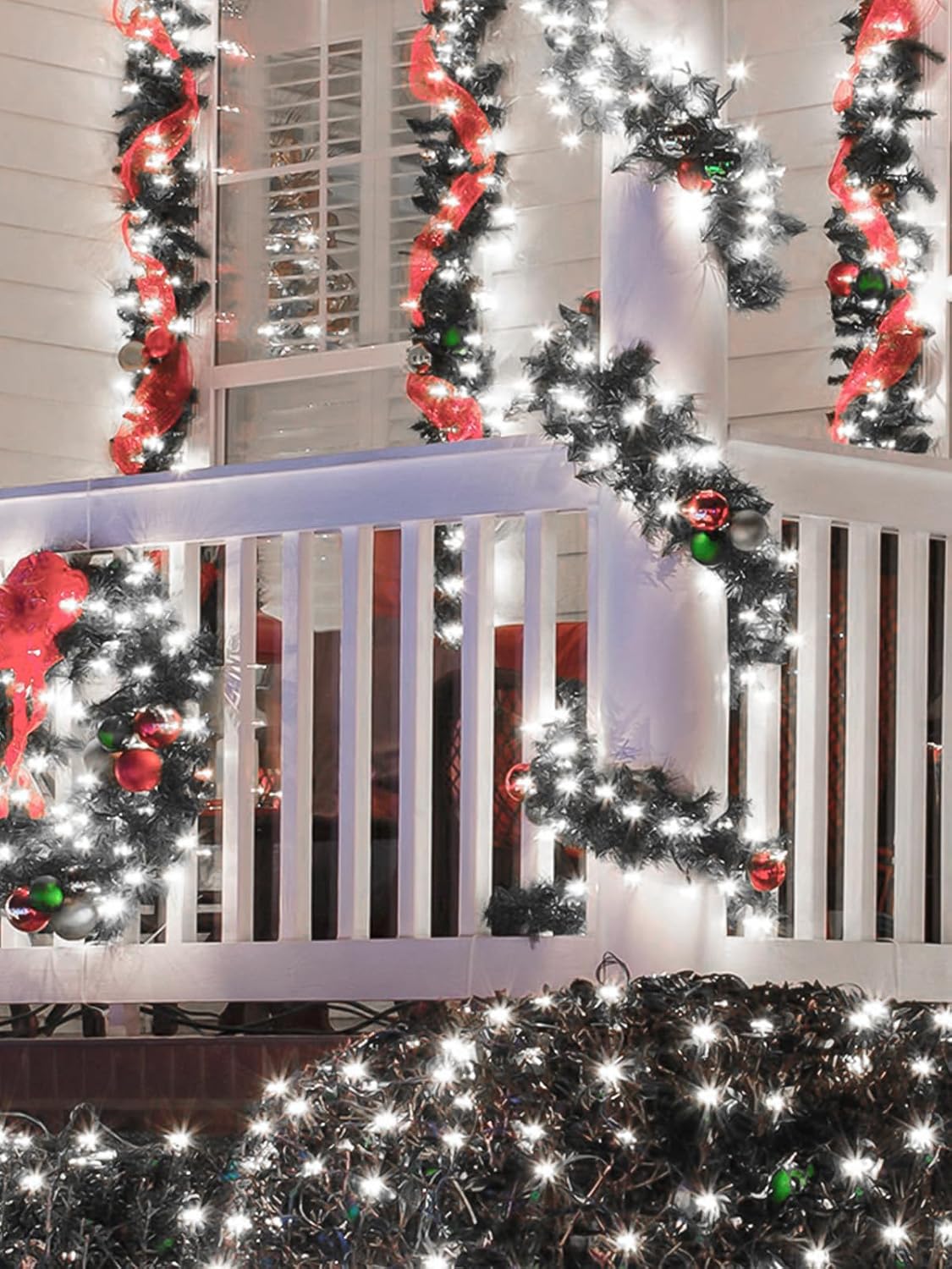 • Upgraded Solar Christmas Lights Outdoor : These solar string lights are equipped with super-bright LED beads and an enhanced solar panel for higher energy conversion. The green wire matches the color of your Christmas tree perfectly, while the LED lights create a cozy holiday atmosphere for your home. Each set contains 4pcs of string lights, each string light is 33ft long with 100LEDs + 4.9ft leading wire