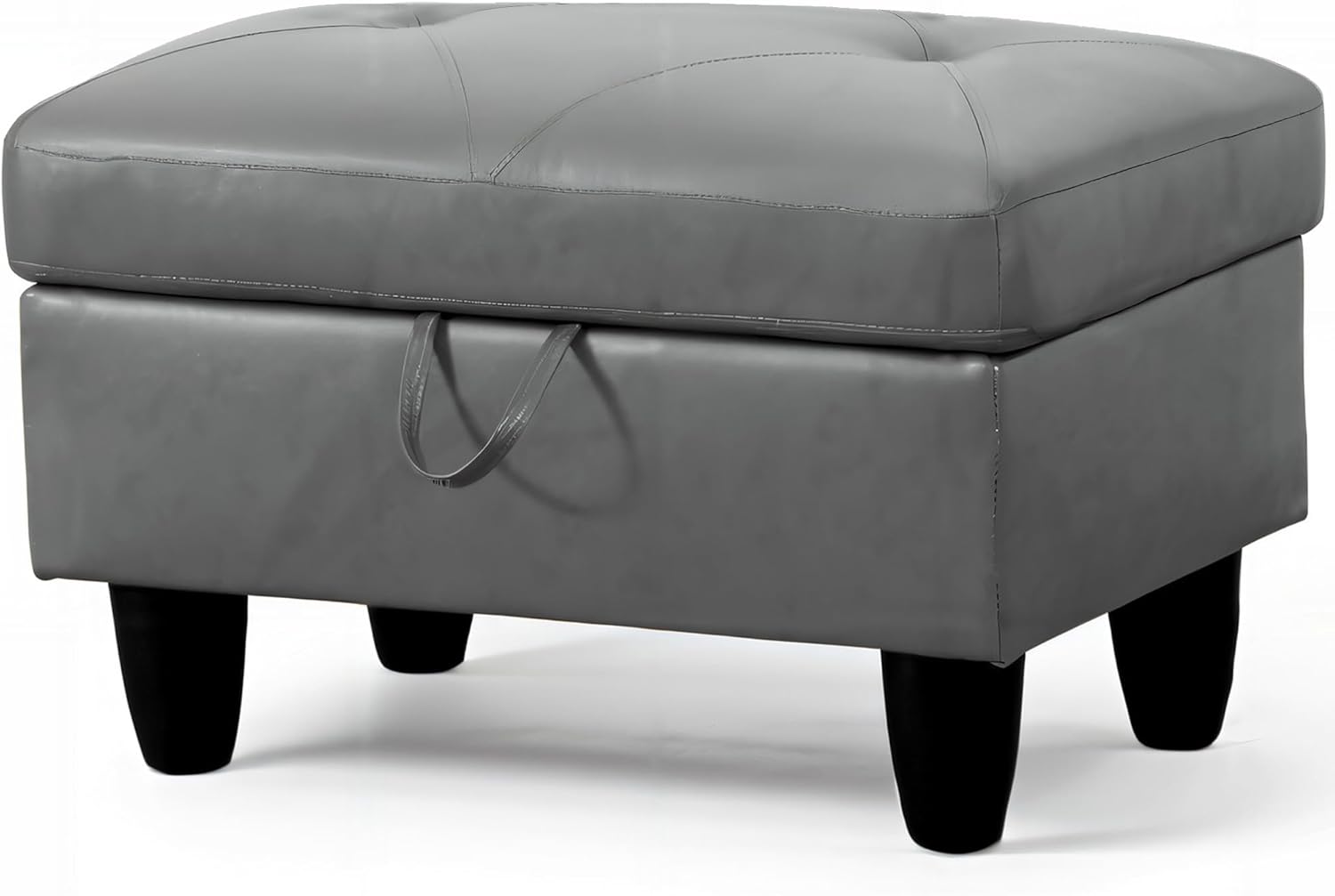 Ottoman Rectangular Storage Ottoman Bench, Faux Leather Footrest, Coffee Table, Stool Footstool with Hinged Lid for Living Room, Bedroom, Entryway, Gray, 28.5"x19"x17.5"