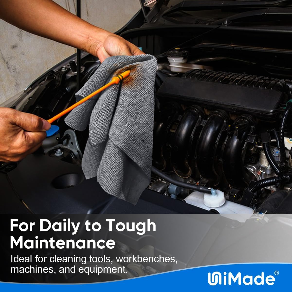 • Super Absorbent& Quick Dry: Crafted from premium microfiber, UNIMADE cleaning rags excel in soaking up oils, liquids, and workshop spills. Their highly absorbent qualities enhance their effectiveness in removing stubborn grime and grease