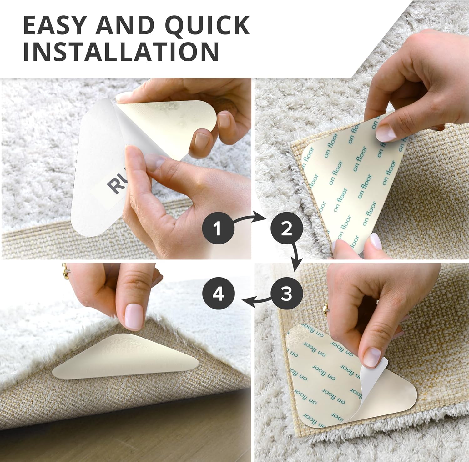 • ✌️ X-Protector Anti Slip Rug Grips work with any type of your rugs - carpet tape double sided, stops rugs from sliding, and keeps them in place. Carpet pad makes corners flat instantly and forever!