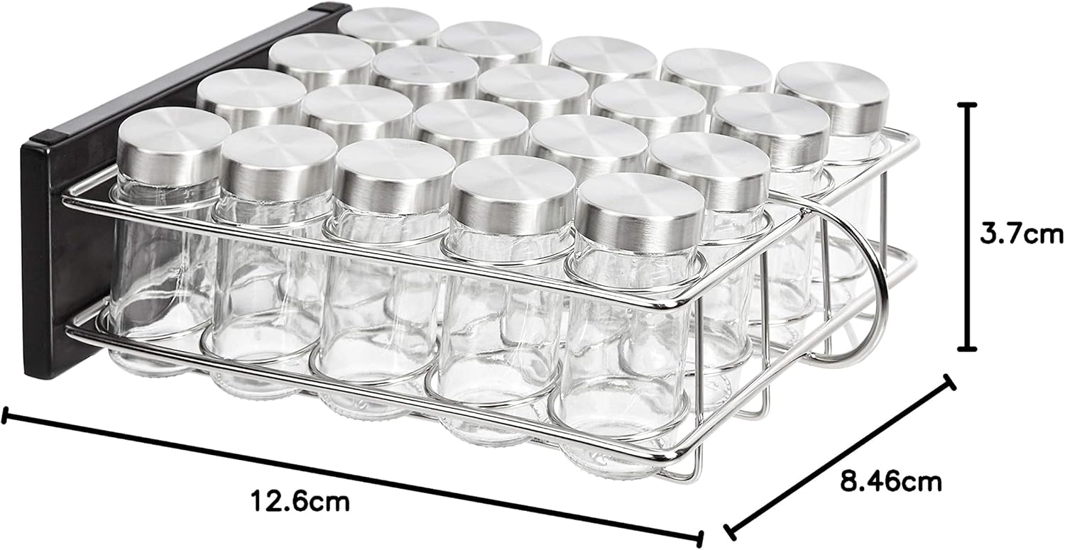 • COMPLETE SPICE ORGANIZATION: These spice racks include silver screw-on tops for the jars so your spices are well stored and easily identifiable