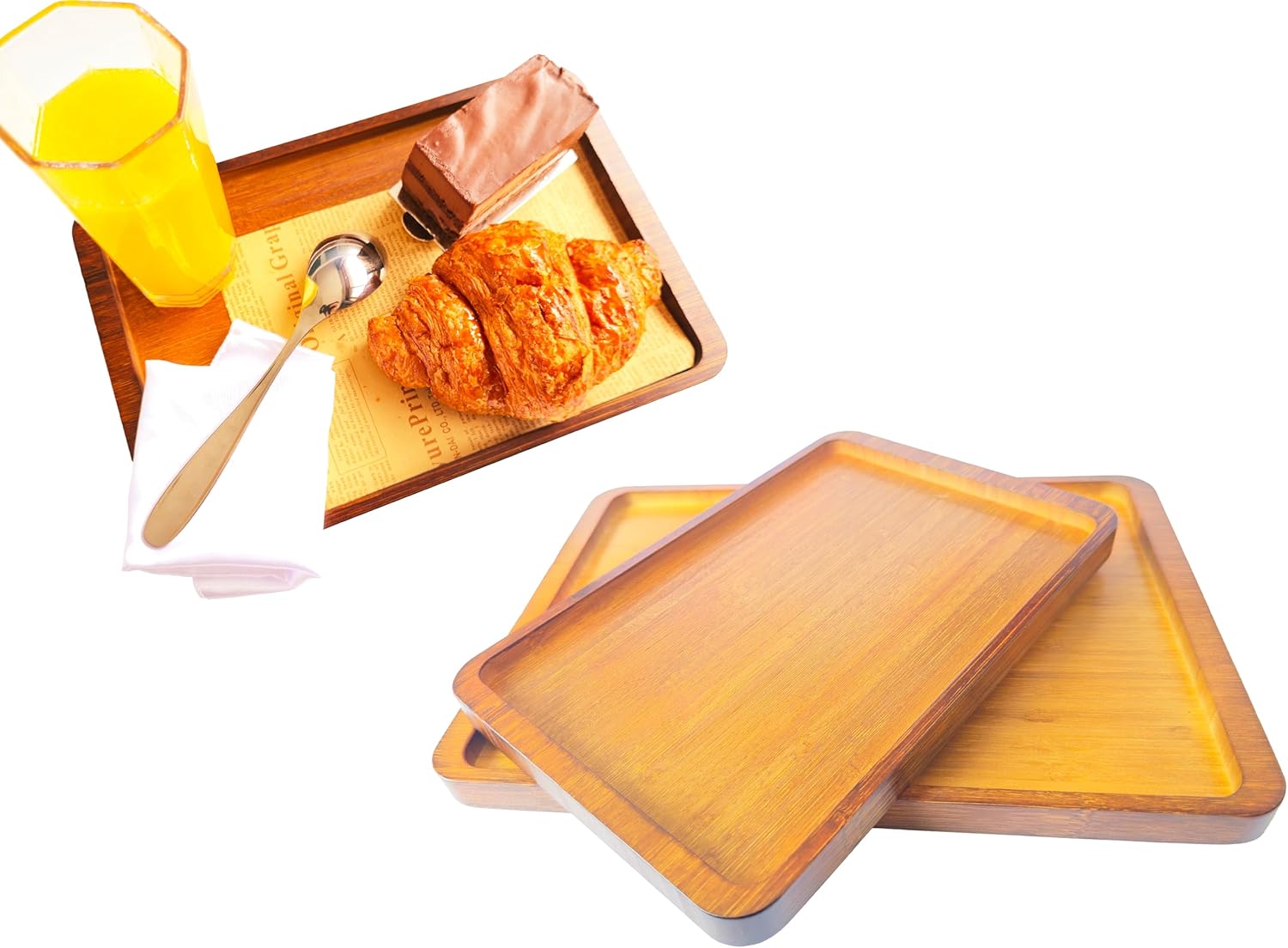 Bamboo Serving Tray – Two Sizes for Breakfast, Tea, Coffee & Snacks – Eco-Friendly Wooden Tray for Bed, Kitchen, Coffee Table, or Decorative Use