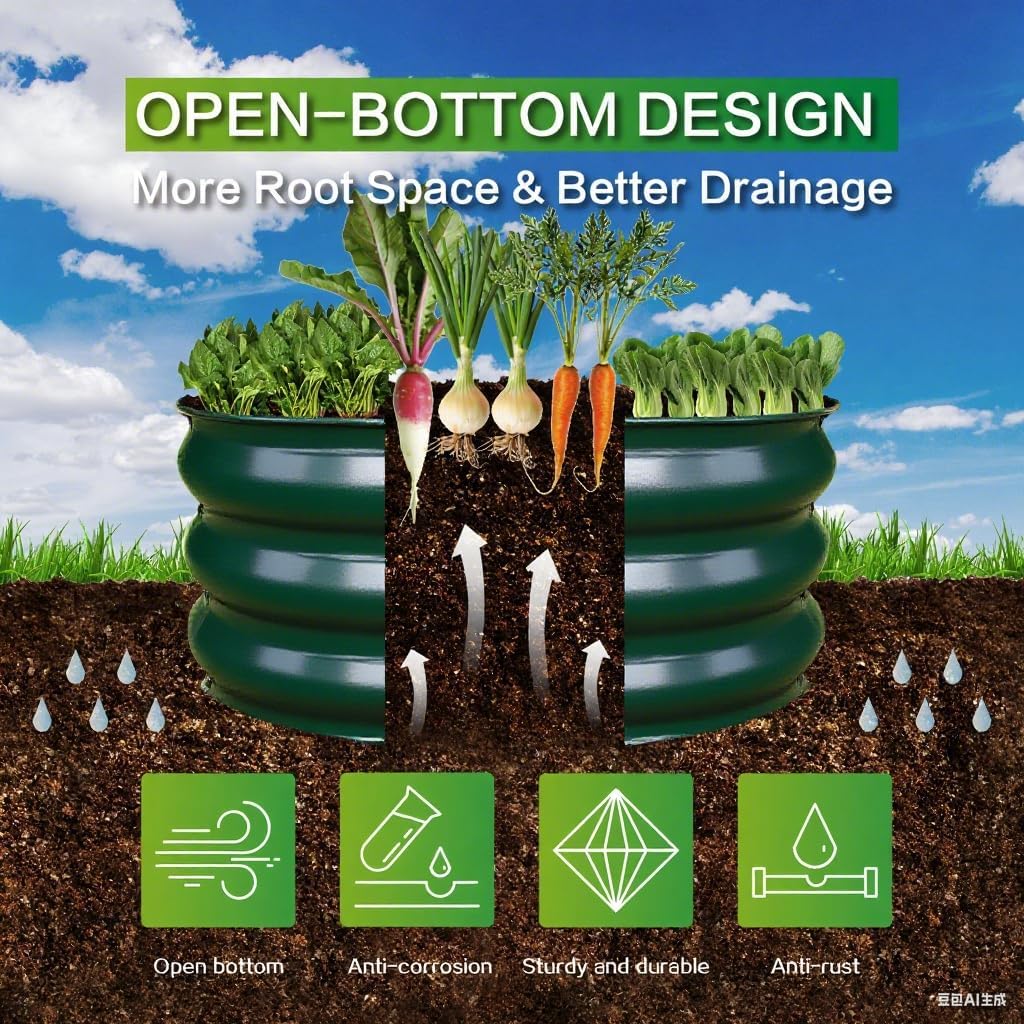 • OPEN BOTTOM DESIGN: GARDMAX galvanized planter raised beds are designed with an open bottom, which is good for drainage to protect plants, plant roots won't be sick from excessive water. It also keep weeds away from soil and keep out chicken small pets like puppies, rabbits to protect your plants