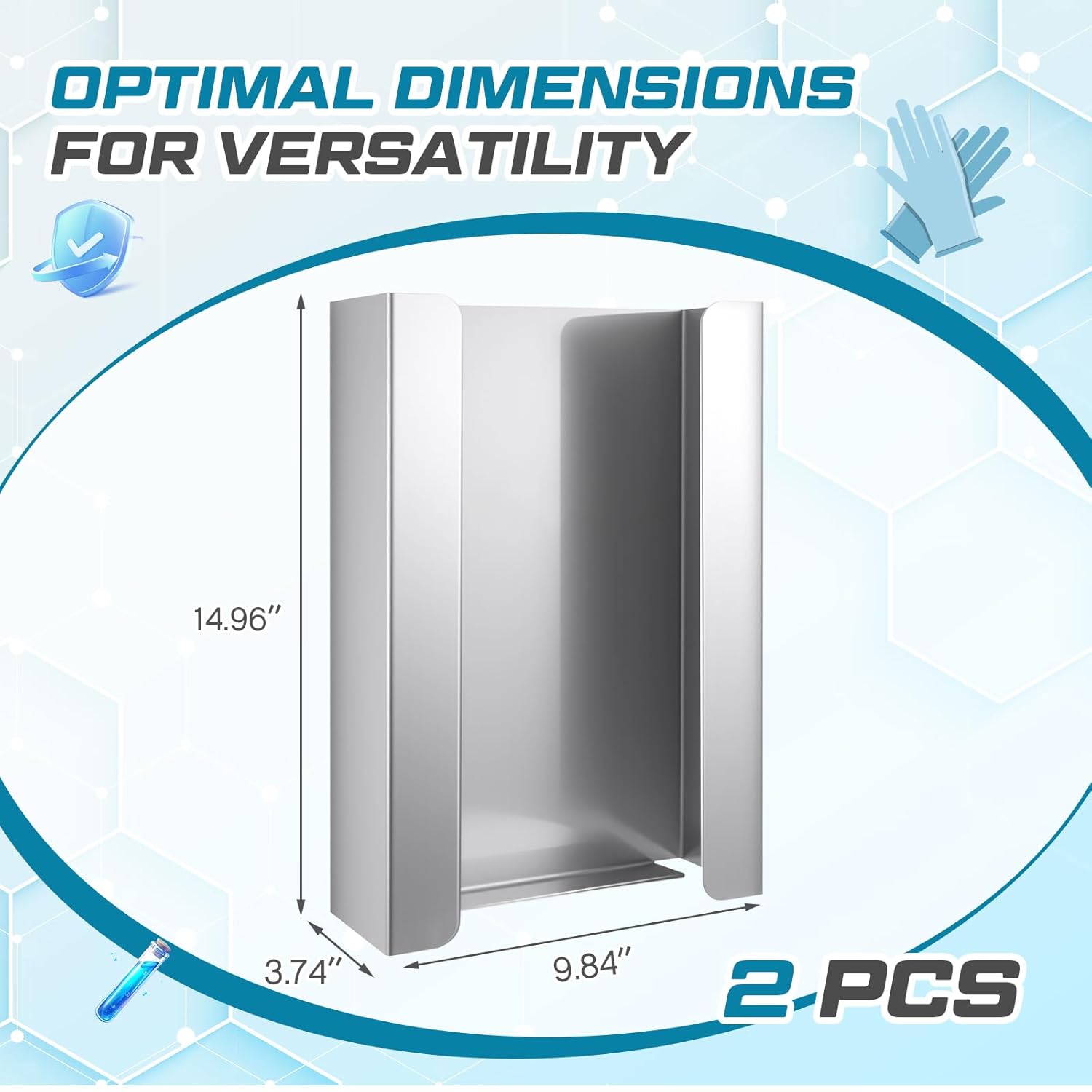 • Optimal Dimensions for Versatility: each glove box dispenser measures approximately 9.84"h x 14.96"w x 3.74"d, ensuring a compact fit in various environments without compromising on storage capacity